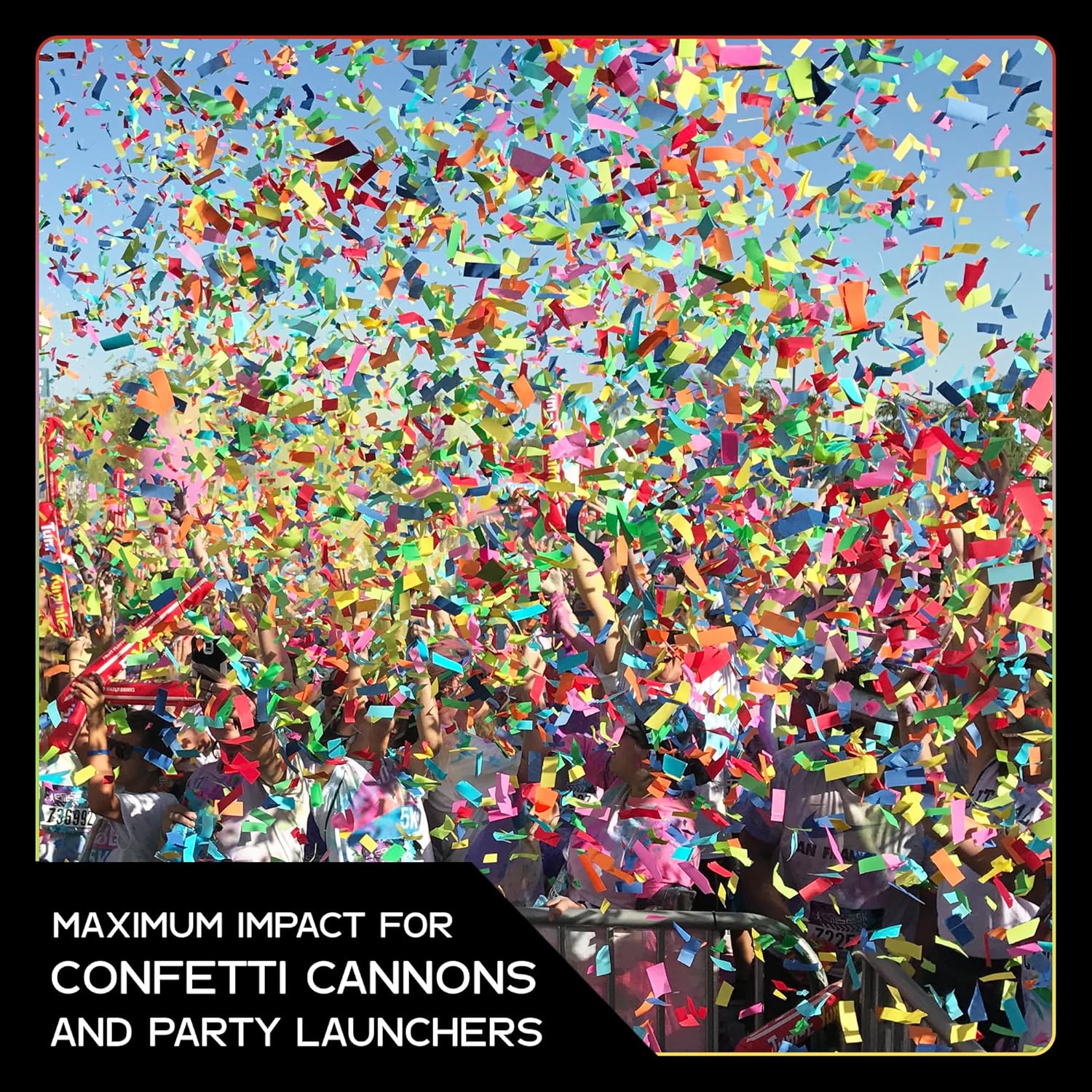 - Classic Shape Designed for Wide Dispersion: Measuring 2" x 3⁄4", our confetti paper is precision-cut to create a graceful floating effect. Whether tossed by hand or launched from cannons or flick sticks, it disperses beautifully across stages, dance floors, and party spaces for a stunning visual impact.
