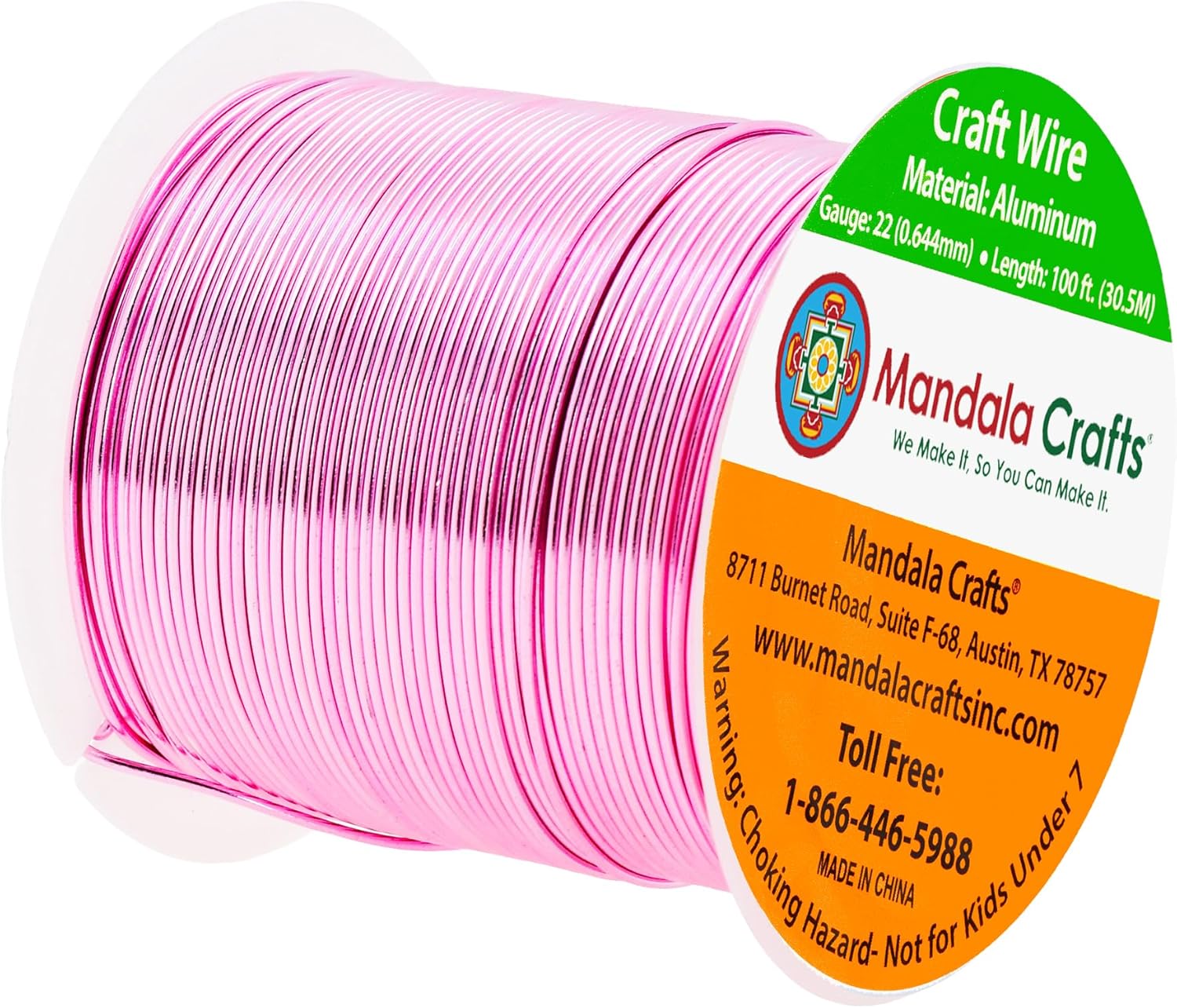 Mandala Crafts 22 Gauge Anodized Aluminum Craft Wire for Jewelry Making - 100 FT Colored Flexible Pink Wire - Bendable for Bonsai Armature Crafting Sculpting