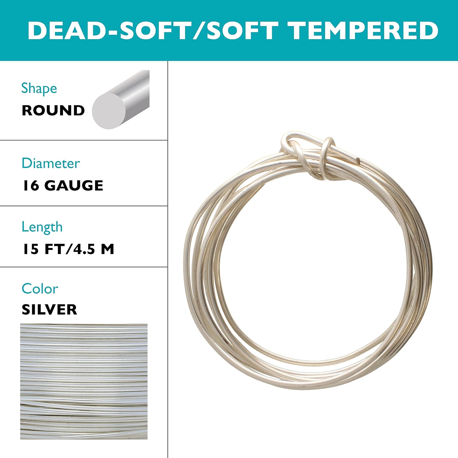 - COILS OF WIRE: This 16-gauge wire comes in a vibrant silver color, encased in a tarnish resistant coating, and measures 1.3mm (0.051 inches) in diameter. There is 15 feet of wire on this spool and comes with a clip to protect your wire when it is not in use.