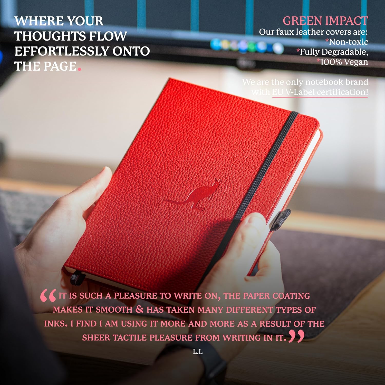 - CRAFTED FOR QUALITY: A hardcover PU vegan leather notebook with micro-perforated cream 100gsm pages. Features an elastic closure, inner pocket, built-in bookmark, and pen holder for organized, convenient, and stylish note-taking anywhere.