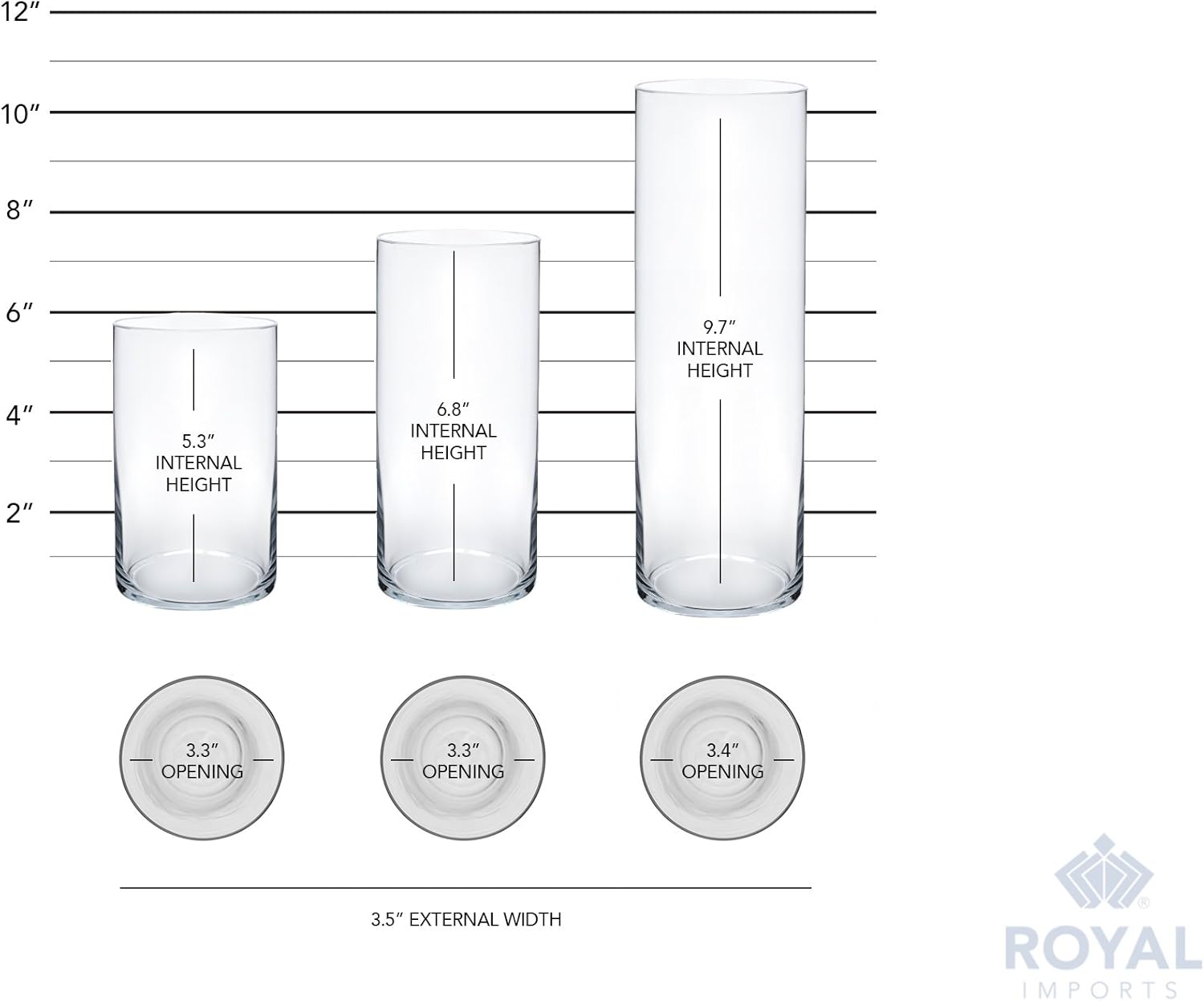 - Best Material: Royal Imports set of 3 clear glass cylinder vases are made of crystal clear glass to maximize content visibility. Each cylinder features thick glass walls and weighted base to ensure durability. Imported.