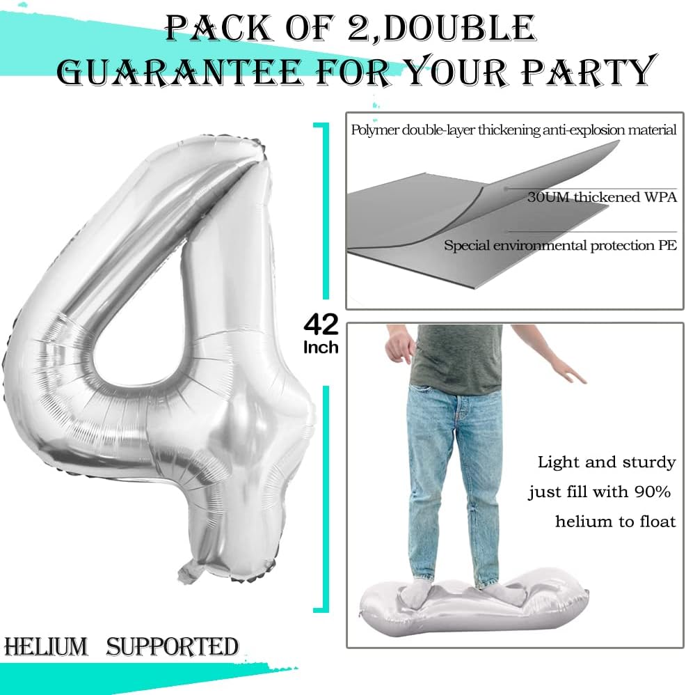 - Package Includes:Number 4 Balloons*3,42 inch,32 inch,16inch each,Straw*1