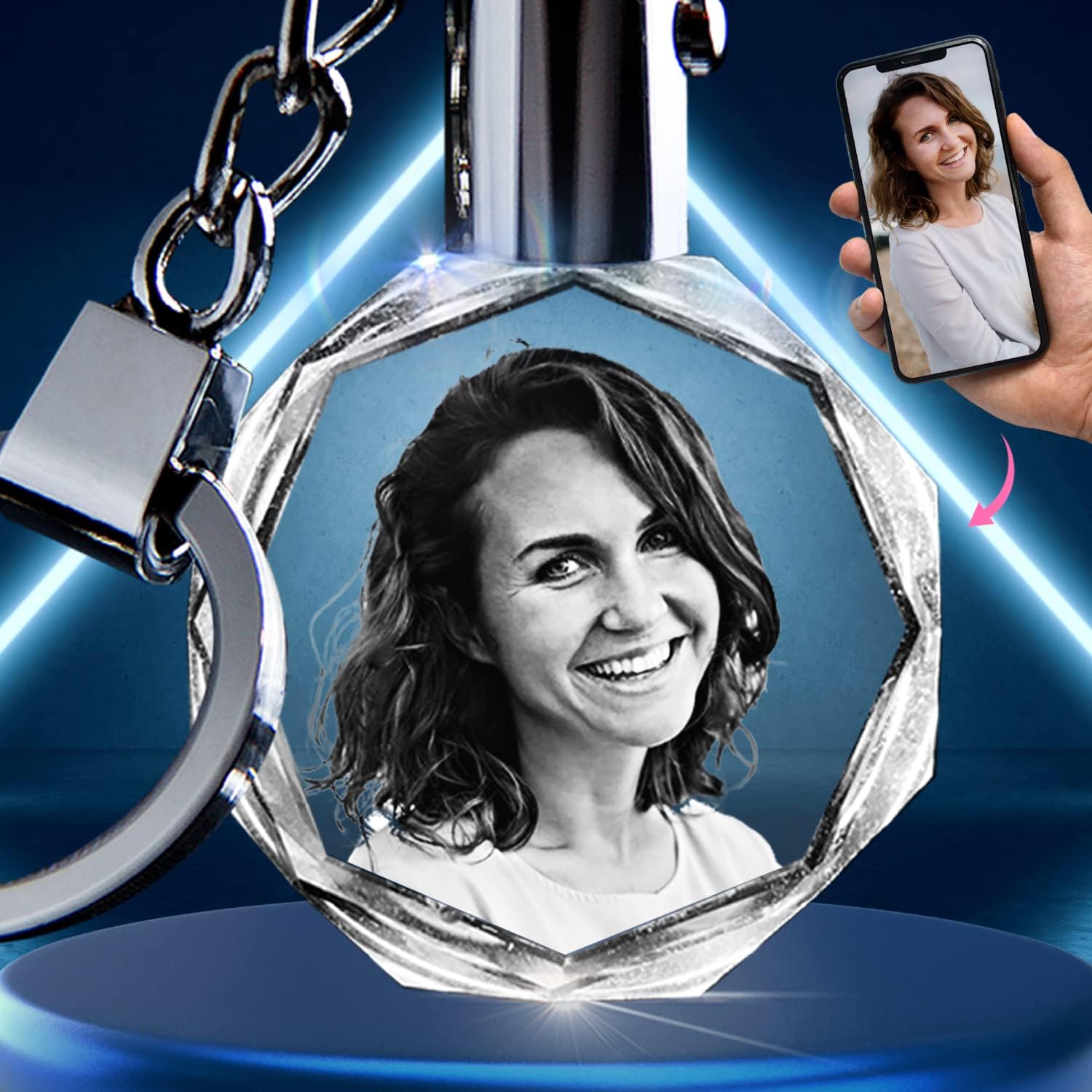 - Enhanced LED Light Feature: Each custom crystal photo keychain comes with a built-in LED light, illuminating the intricate details of your engraving with a soft glow. Simply press the button to bring your photo to life, even in low-light settings. Watch your crystal engraving come to life with a soft glow.