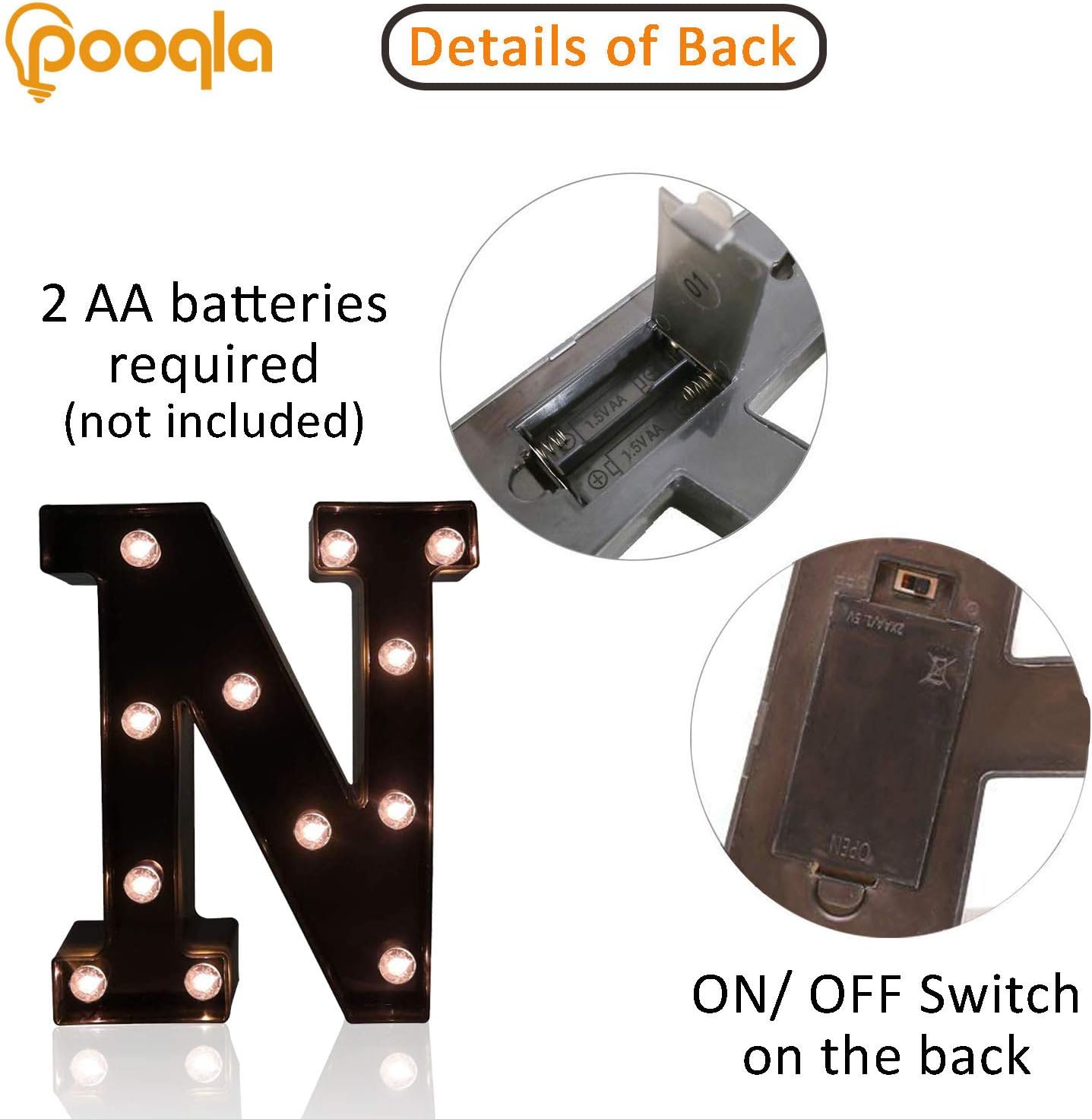 Decorative LED Illuminated Letter Marquee Sign - Alphabet Marquee Letters with Lights For Wedding Birthday Party Christmas Night Light Lamp Home Bar Decoration N, Black