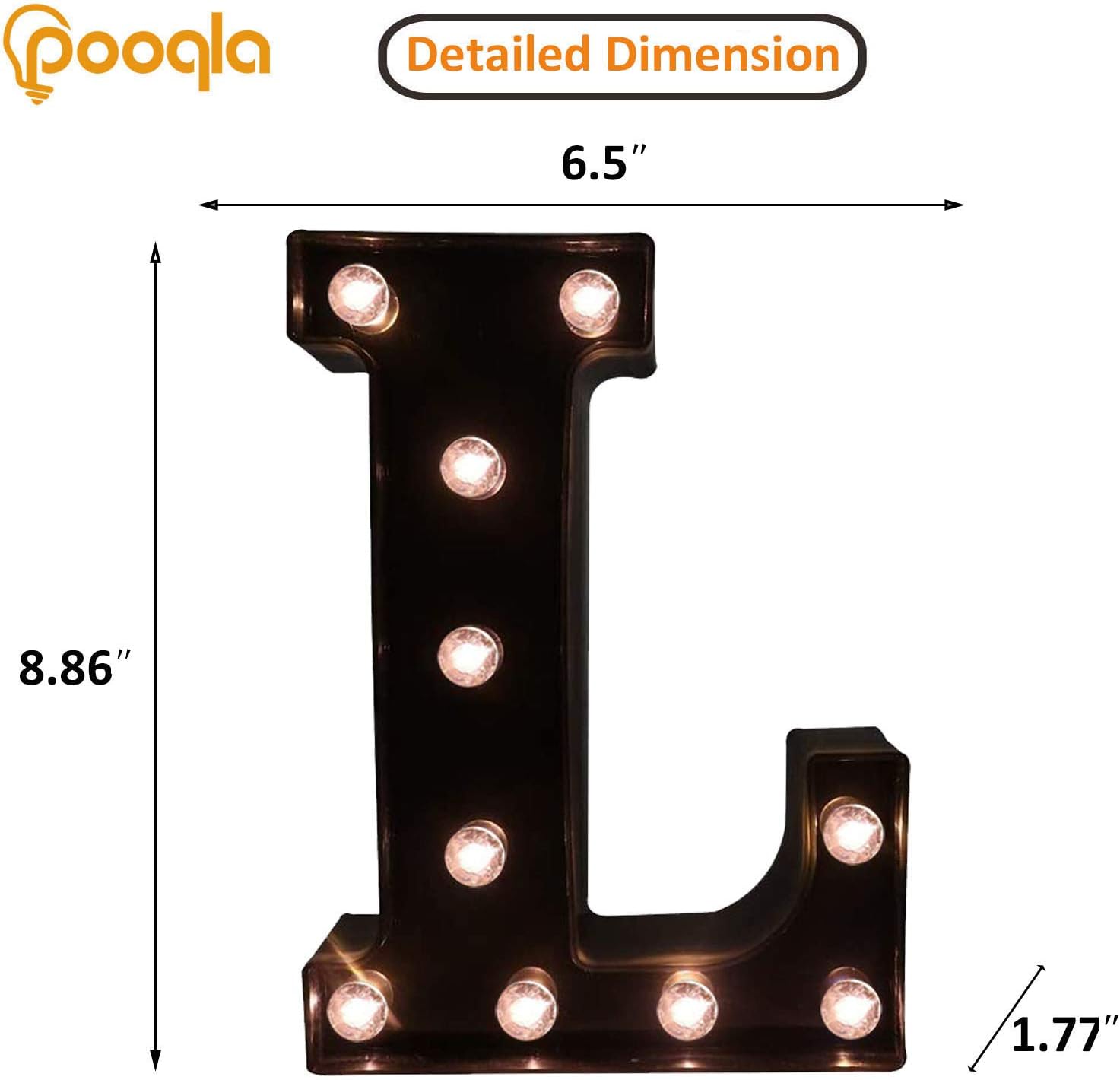Pooqla Decorative LED Illuminated Letter Marquee Sign - Alphabet Marquee Letters with Lights for Wedding Birthday Party Christmas Night Light Lamp Home Bar Decoration L, Black