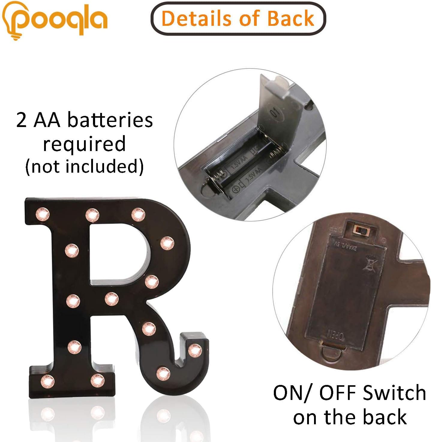 Decorative LED Illuminated Letter Marquee Sign - Alphabet Marquee Letters with Lights For Wedding Birthday Party Christmas Night Light Lamp Home Bar Decoration R, Black