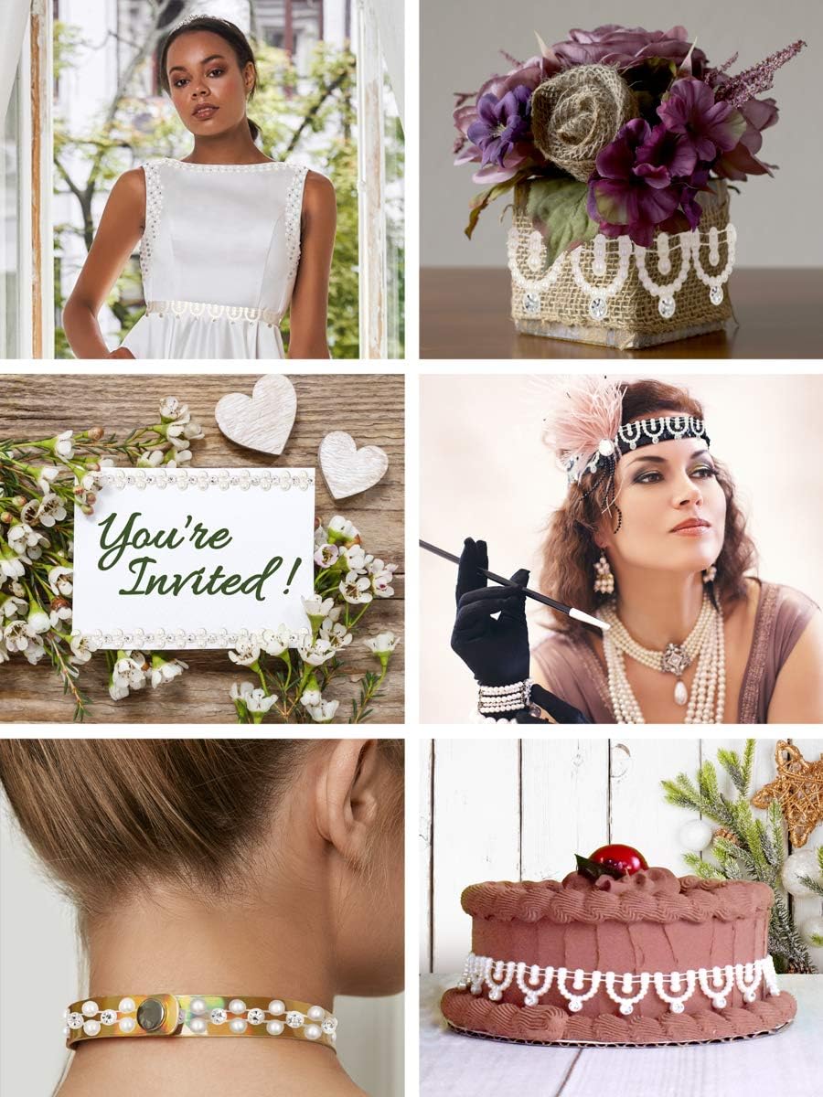 - Strings of Pearls for Crafting, Jewelry Making, & DIY Scrapbooking: The big ivory pearls for crafts are perfect for cards, lampshades, chandeliers, curtains, and bridal headpieces. The pearl ribbon is also great for sewing onto dresses, denim, and shoes.