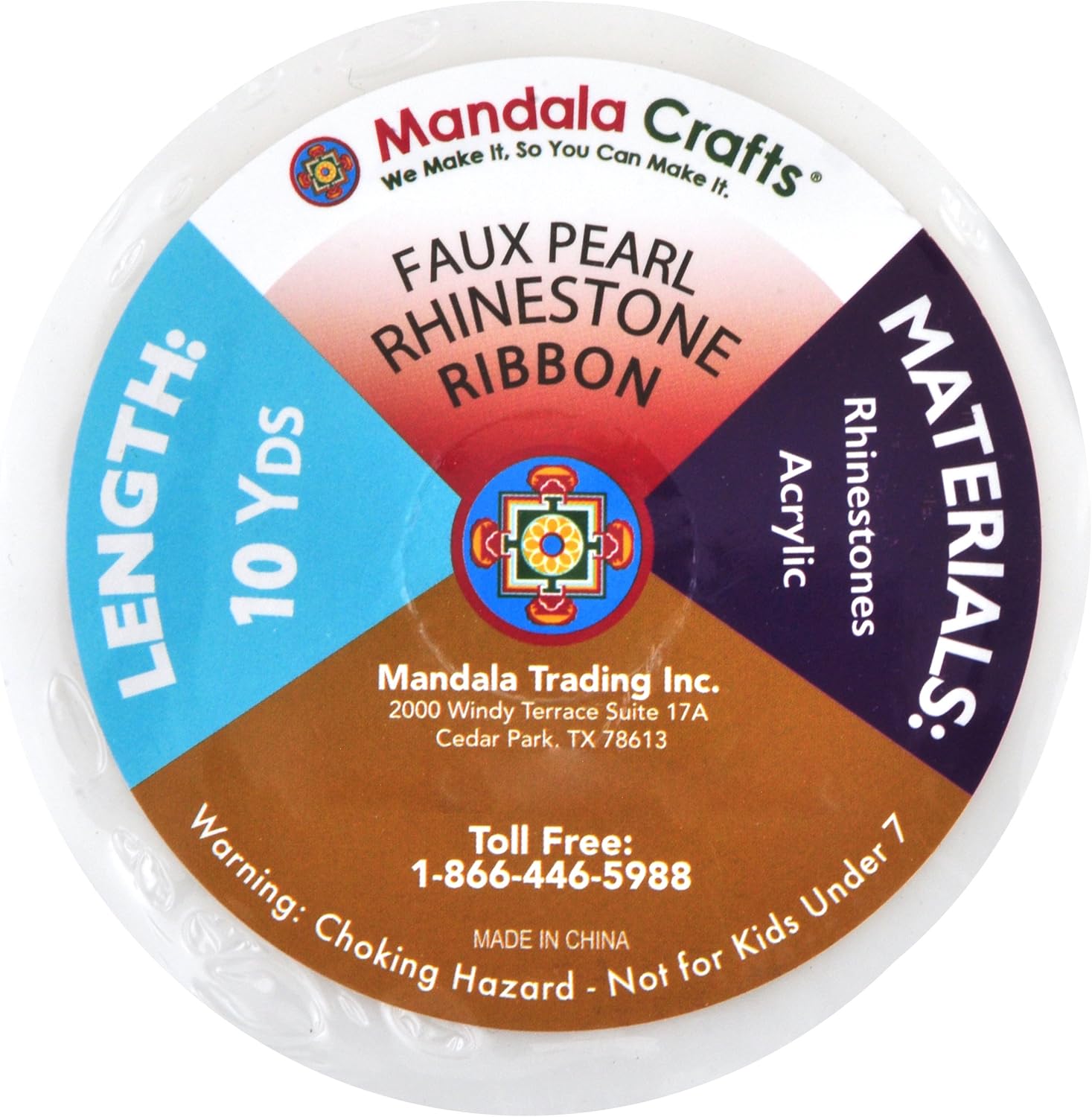 Mandala Crafts 0.75 Inch Crystal Faux White Pearl Beads Roll - 10 Yards Strand of Rhinestones Fake Pearls Chain Garlands Spool String for Christmas Tree, Wedding, Party, Vases, DIY Decoration