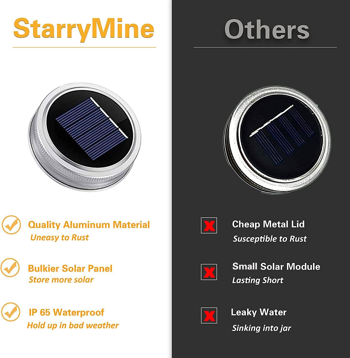 Solar Mason Jar Lid String Lights, 8 Pack 20 Led String Fairy Star Firefly Jar Lids Lights with 8 Hangers Included (Jars Not Included), for Mason Jar Patio Garden Wedding Lantern