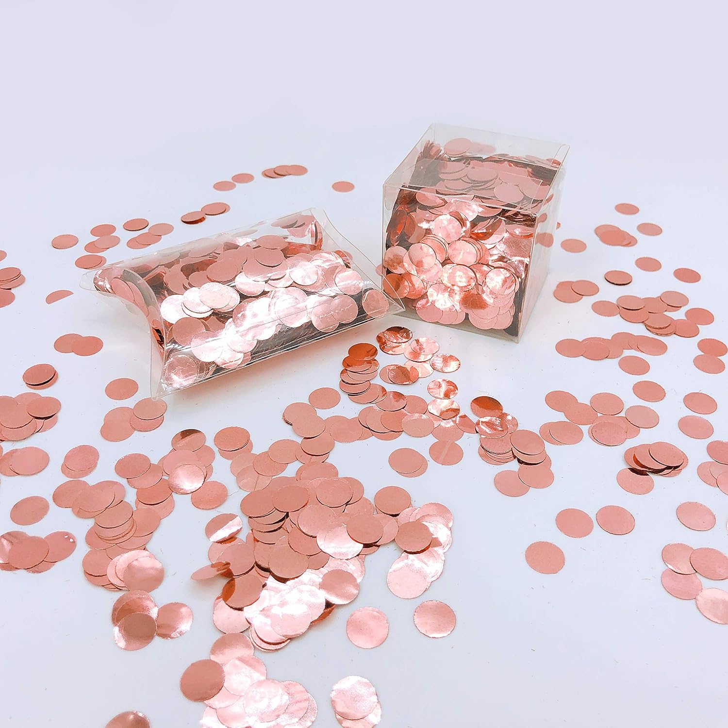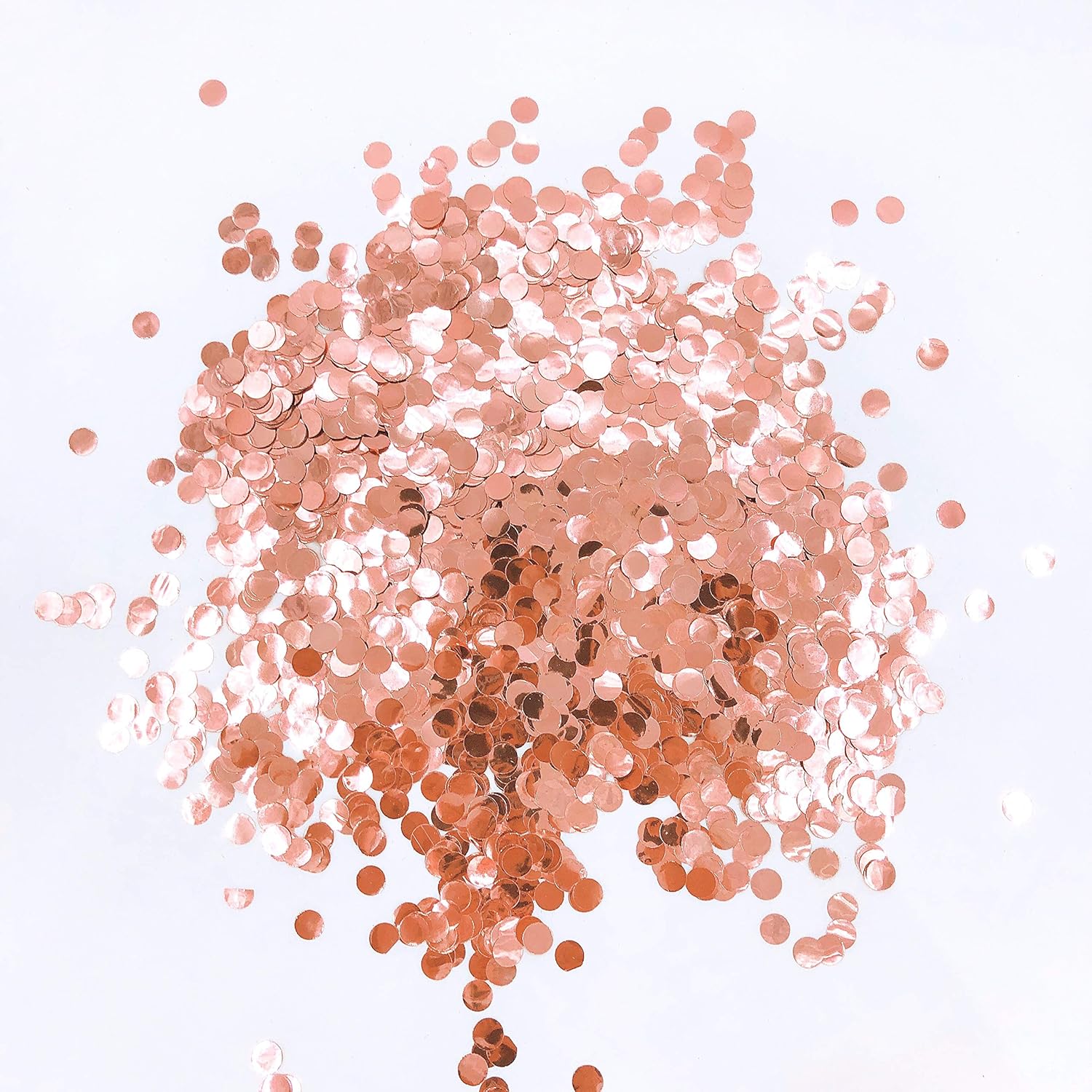 - Glitter Rose Gold Foil Party Confetti size: 1 cm In diameter for easy cleanup, total 60 grams