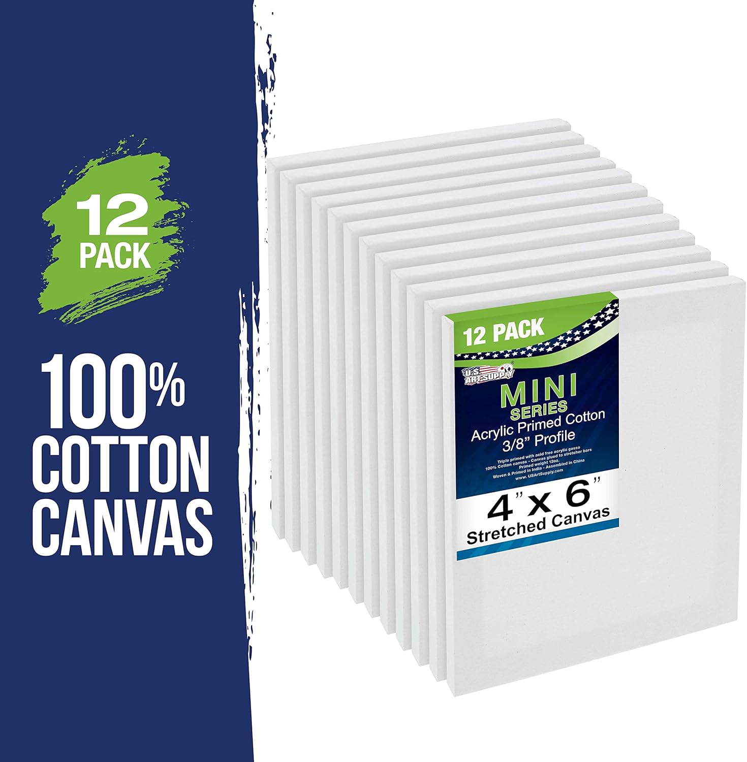 U.S. Art Supply 4" x 6" Stretched Canvas with 8" High Small Natural Wooden Easel (12 Pack), A-Frame Canvas Stand Tripod, Small Painting Easels - Tabletop Easel for Painting, Canvases, Student Crafts