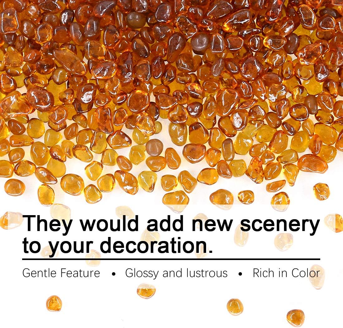 Hilitchi Glass Stones Non-Toxic Beautiful Smooth Vibrant Colors Vase Filler, Table Scatter, Aquarium Fillers, Gems Displaying, Gem Glass Confetti [Amber Stone Aprox. 1lb(455g)/Bag]