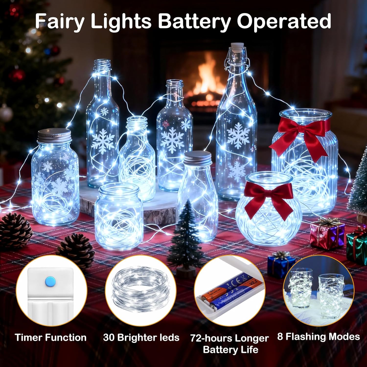 ZNYCYE 10 Pack Fairy Lights Battery Operated,10ft 30 LED String Lights 8 Modes with Timer Waterproof Fairy Lights for DIY Wedding Party Bedroom Mason Jars Christmas Decorations (Cool White)
