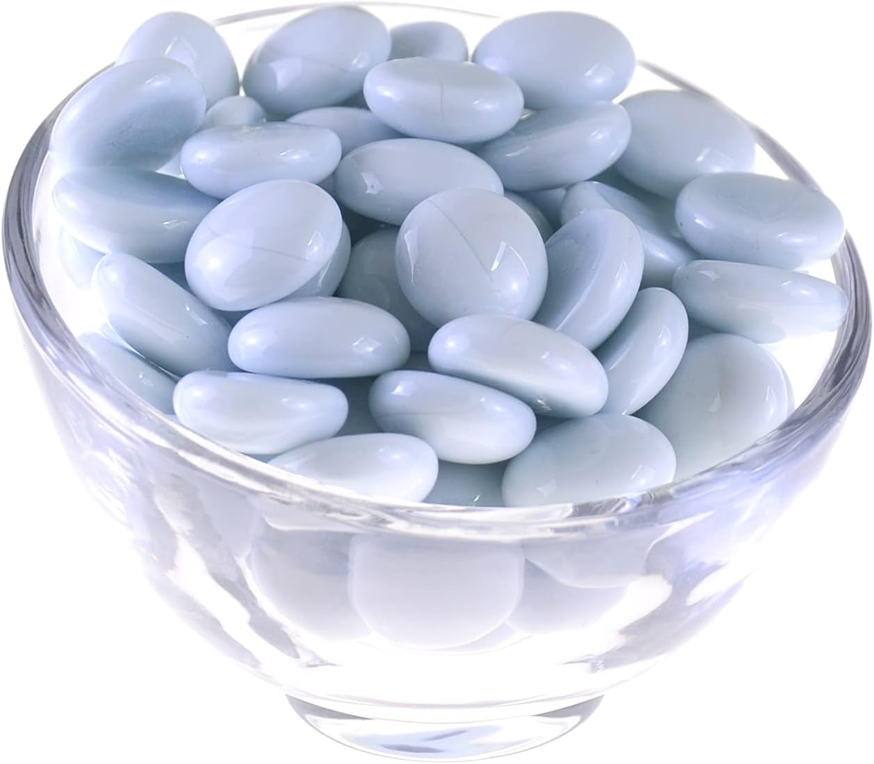 KINGOU Flat Glass Gems/Marbles/Stones/Beads for Vase Filler, Table Scatter, Games - 1 Lbs (17-19mm, Approx. 3/4")-White