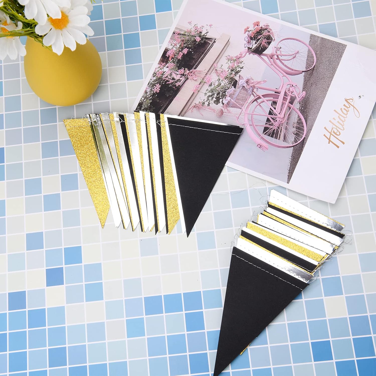 - ✅ WHAT YOU GET - MerryNine Paper Triangle Flags Set come with 3-String Pack, each string hangs 10 Feet (30 feets and 78 flags in total) and each triangle flag is approximately 5.5 inch in length and 3.7 inch in width.