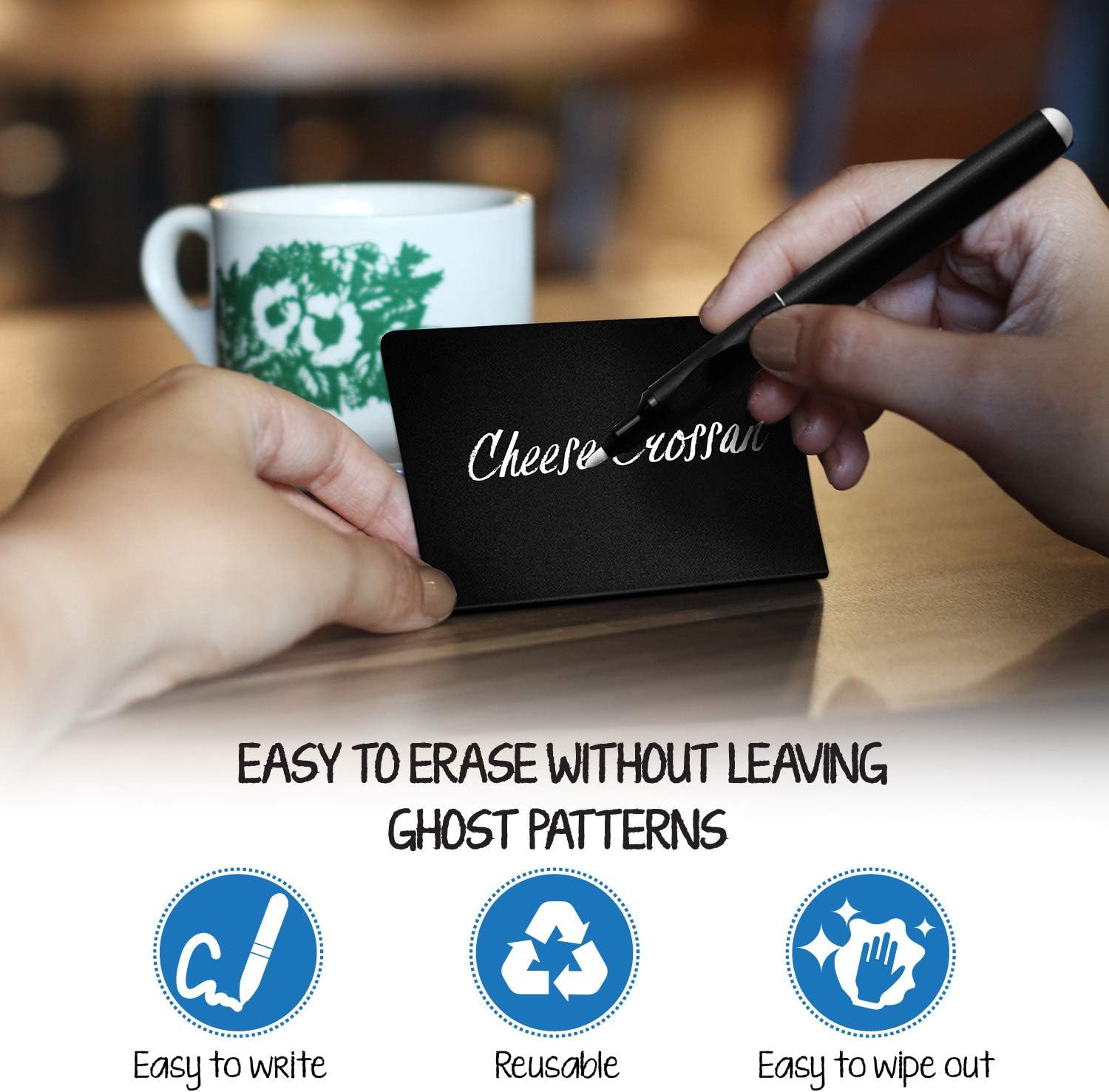 - ๐น Use Chalk Marker or Permanent Marker โ Easy to Clean: Write with chalk markers or permanent markers โ traditional chalk not recommended. Wipe chalk marker with a wet napkin or eraser, and clean permanent ink with a cloth and window cleaner.