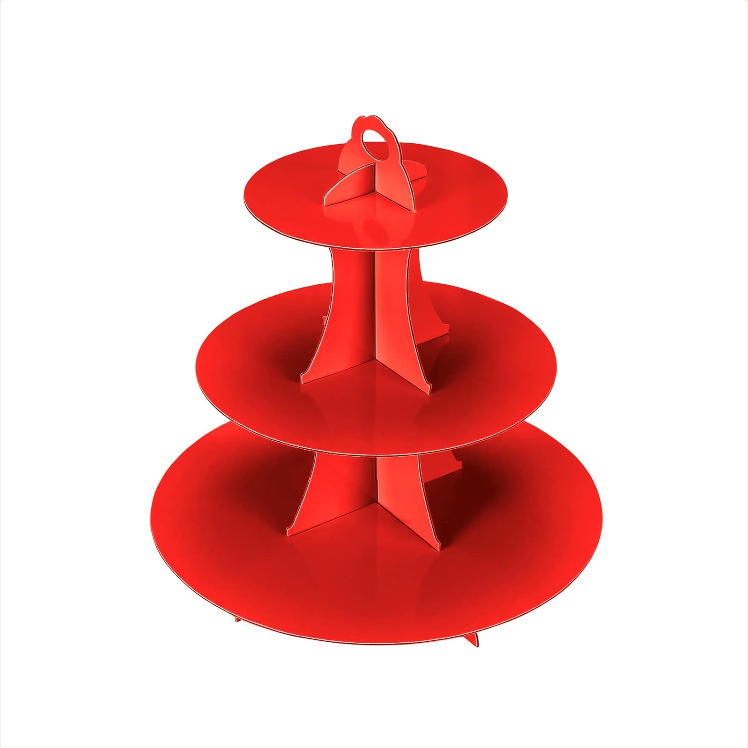 3-Tier Cupcake Stand, Cake Stand holder, Tiered DIY Cupcake Stand Tower for Dessert Table Displays, Birthday Theme Party Favors Decoration, Floral Tea Party, 12" W x 12.8" H, Red