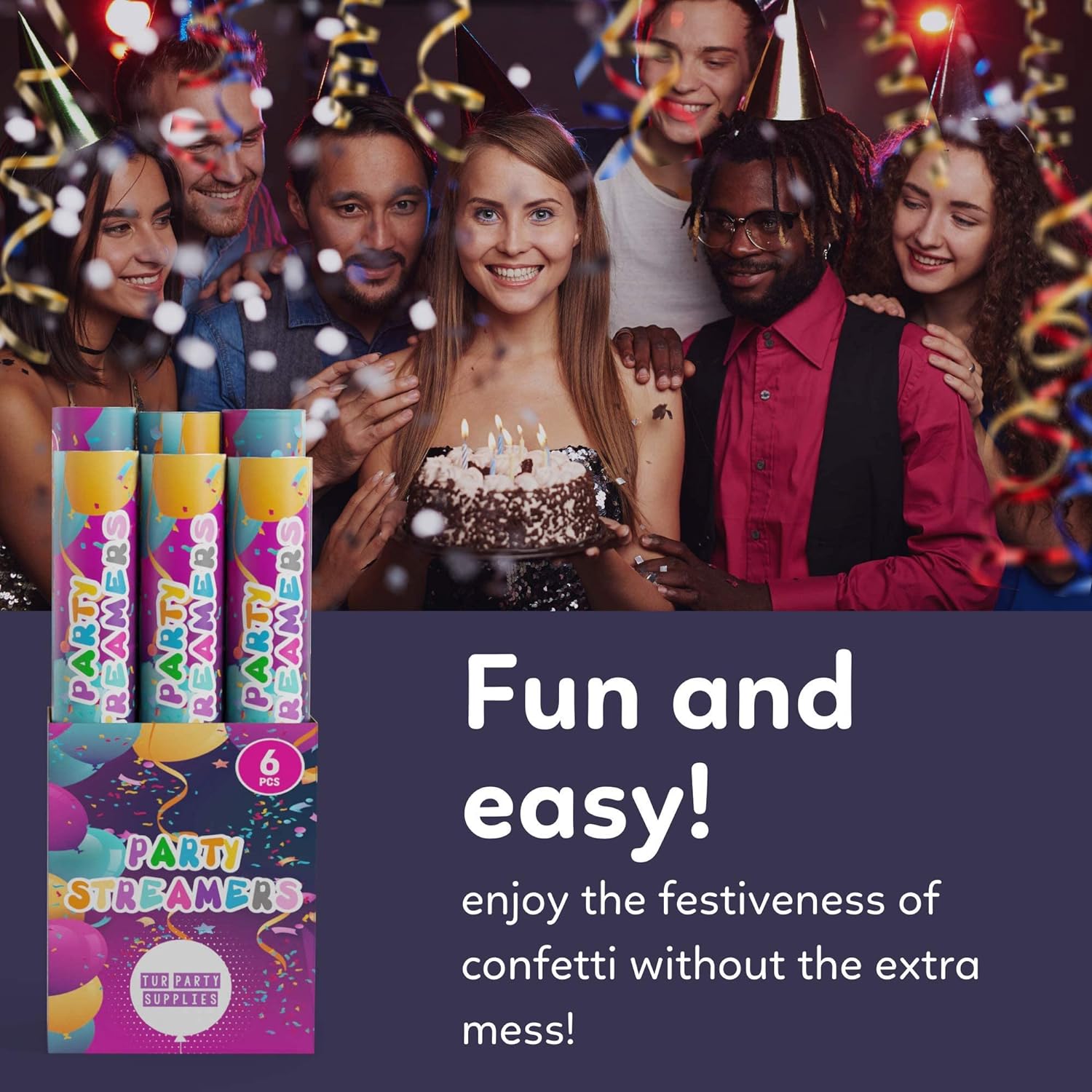 - NO MESS Every popper is packed with bright, easy to clean streamers, so you can celebrate with all your loved ones and be stress-free knowing there is minimal cleanup.