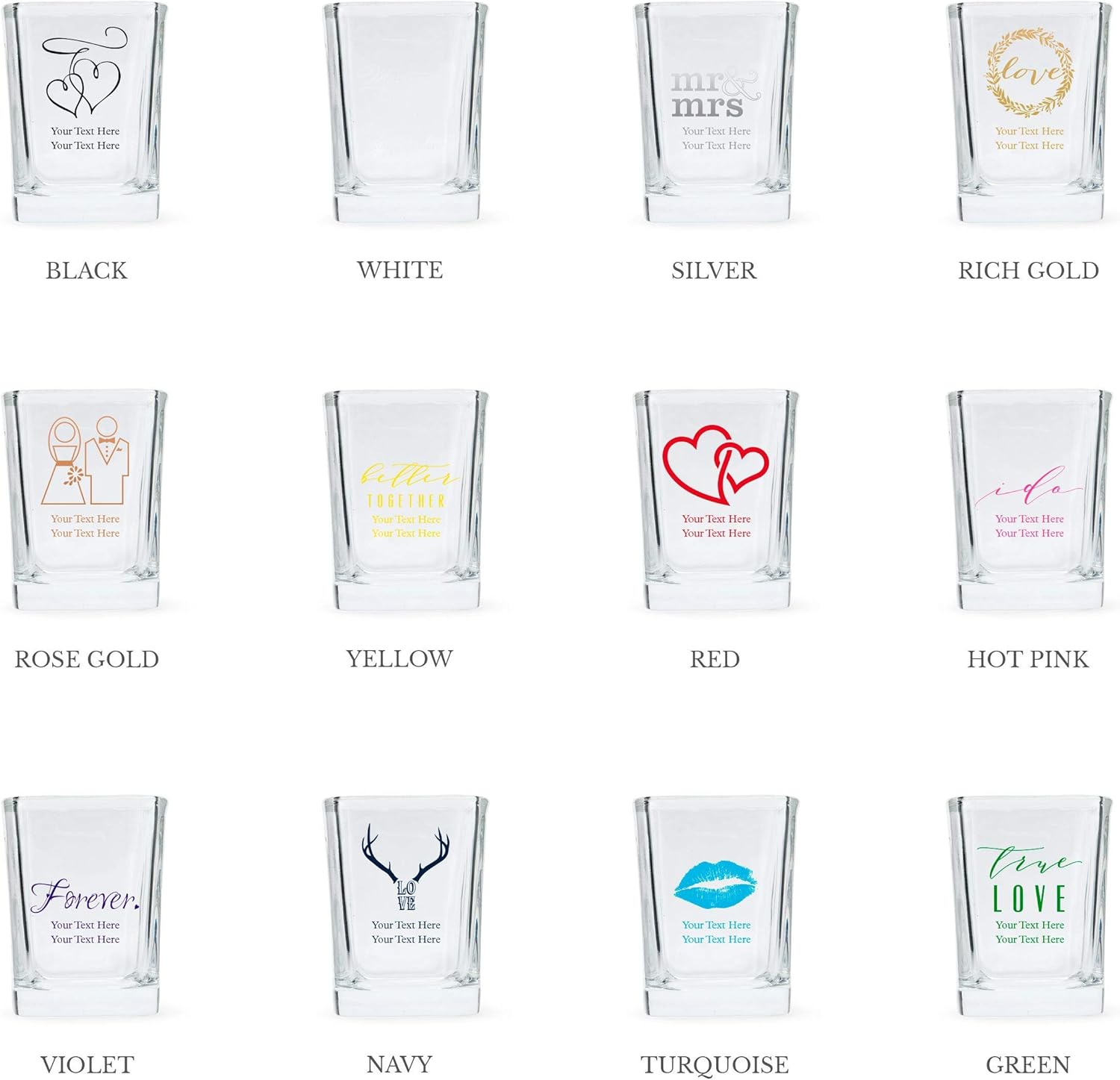 WEDDINGSTAR Personalized 2oz Square Shot Glass Customizable Full Color Print - 60 pack