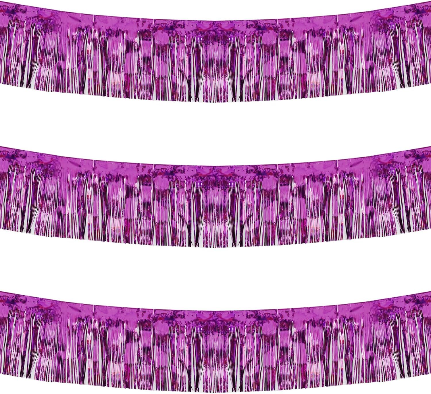 Thick 10 Feet by 15 Inch Purple Foil Fringe Garland - Pack of 3 | Shiny Metallic Tinsel Banner for Parade Floats, Bridal Shower, Wedding, Birthday, Christmas | Wall Hanging Drapes (3)