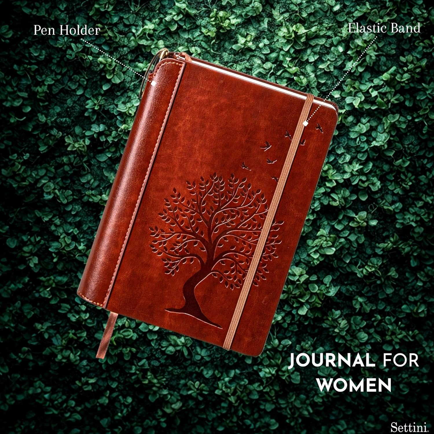 SETTINI® Tree of Life Journal Gift Set - Hardcover Vegan Leather, Unique Pen Holder, Lined, 192 Pages, 6 x 8.5 inches - Includes Pen for Writing and Travel - Birthday Gift