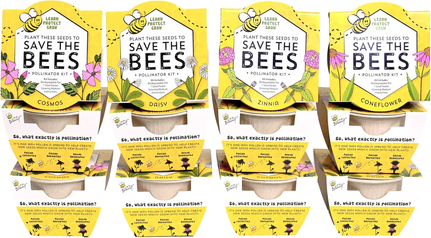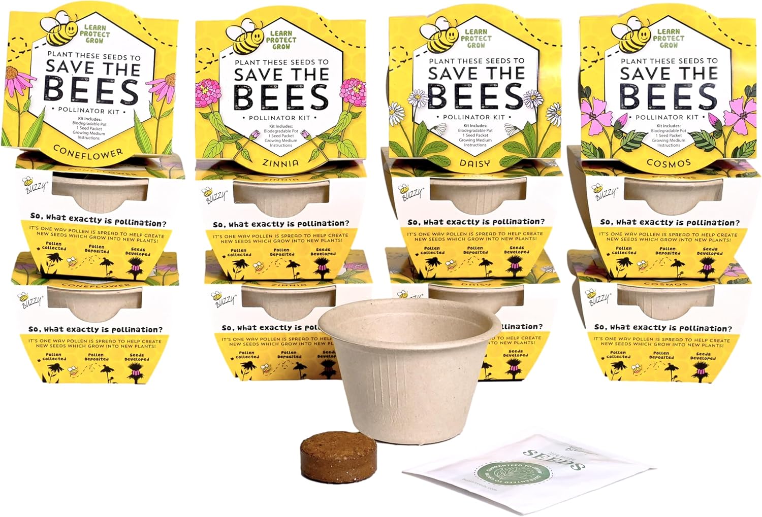 Buzzy Seeds Save The Bees Biodegradable Grow Kit | Herb, Plant, Flower Starter Kit for Kids & Adults | Assorted Wildflowers 12-Pack | Guaranteed to Grow | Best Indoor Grow Your Own Plant