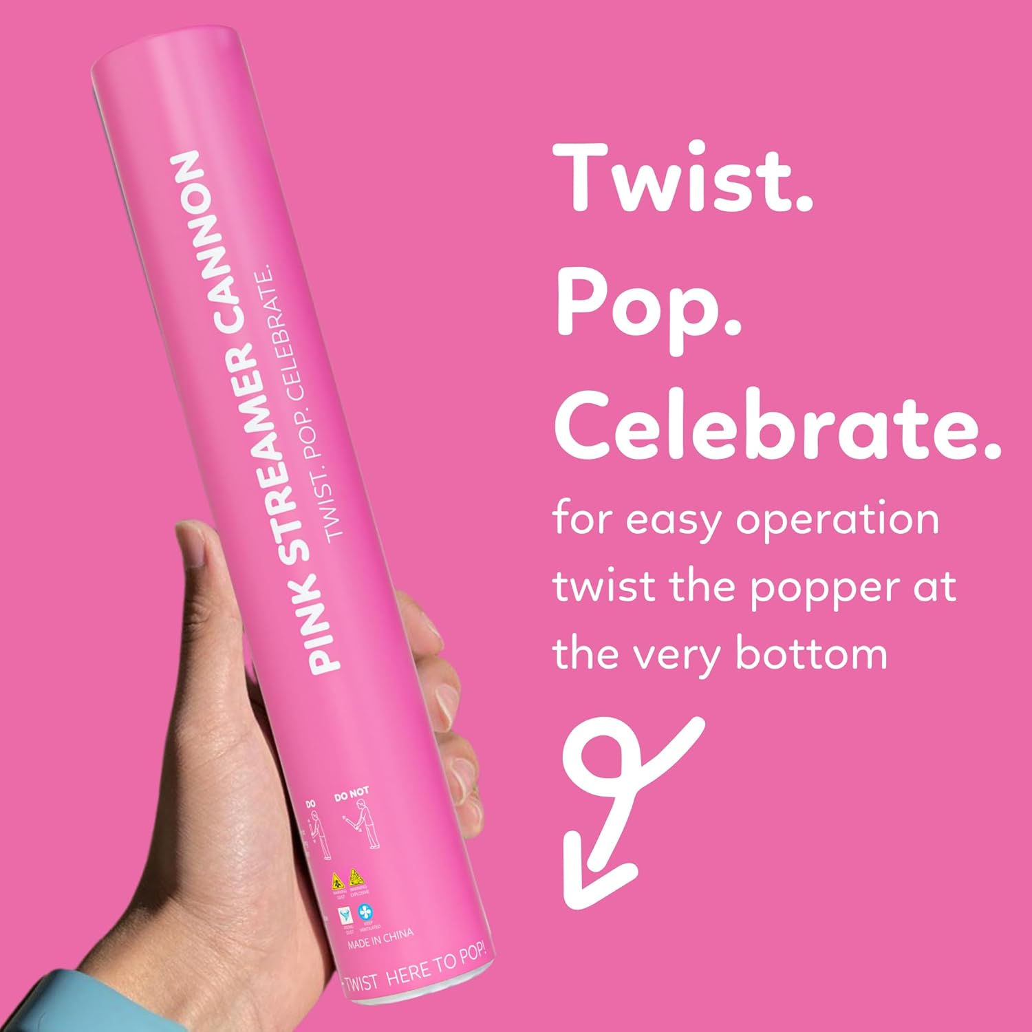 Pink Streamer Cannon Poppers | 2 Pack | Biodegradable Pink Streamers | TUR Party Supplies | Up to 25ft | Giant (12”) | Party Poppers for Graduation, Birthdays, and Bachelorette & Princess Parties