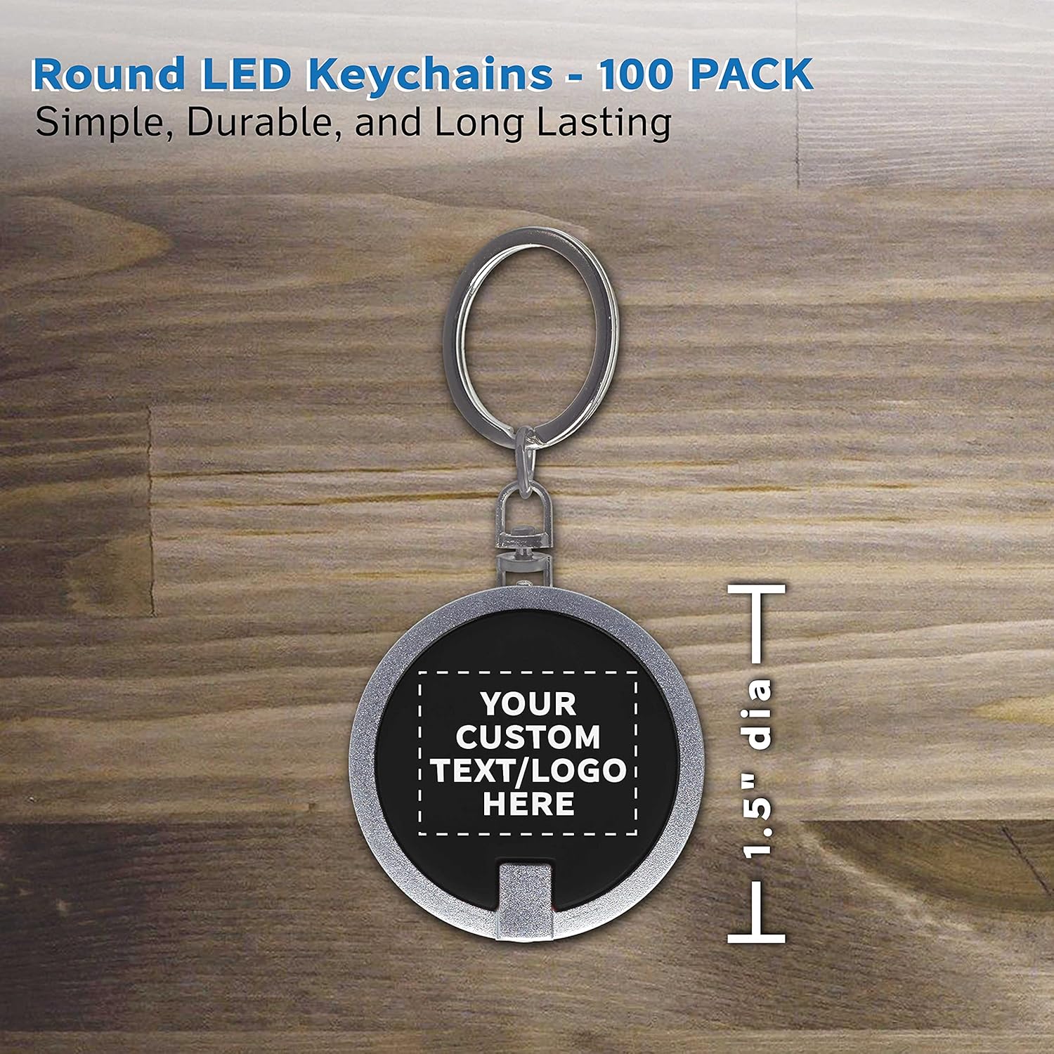 DISCOUNT PROMOS 100 Round LED Keychains - Customizable Text, Logo - Battery included, Plastic - Black