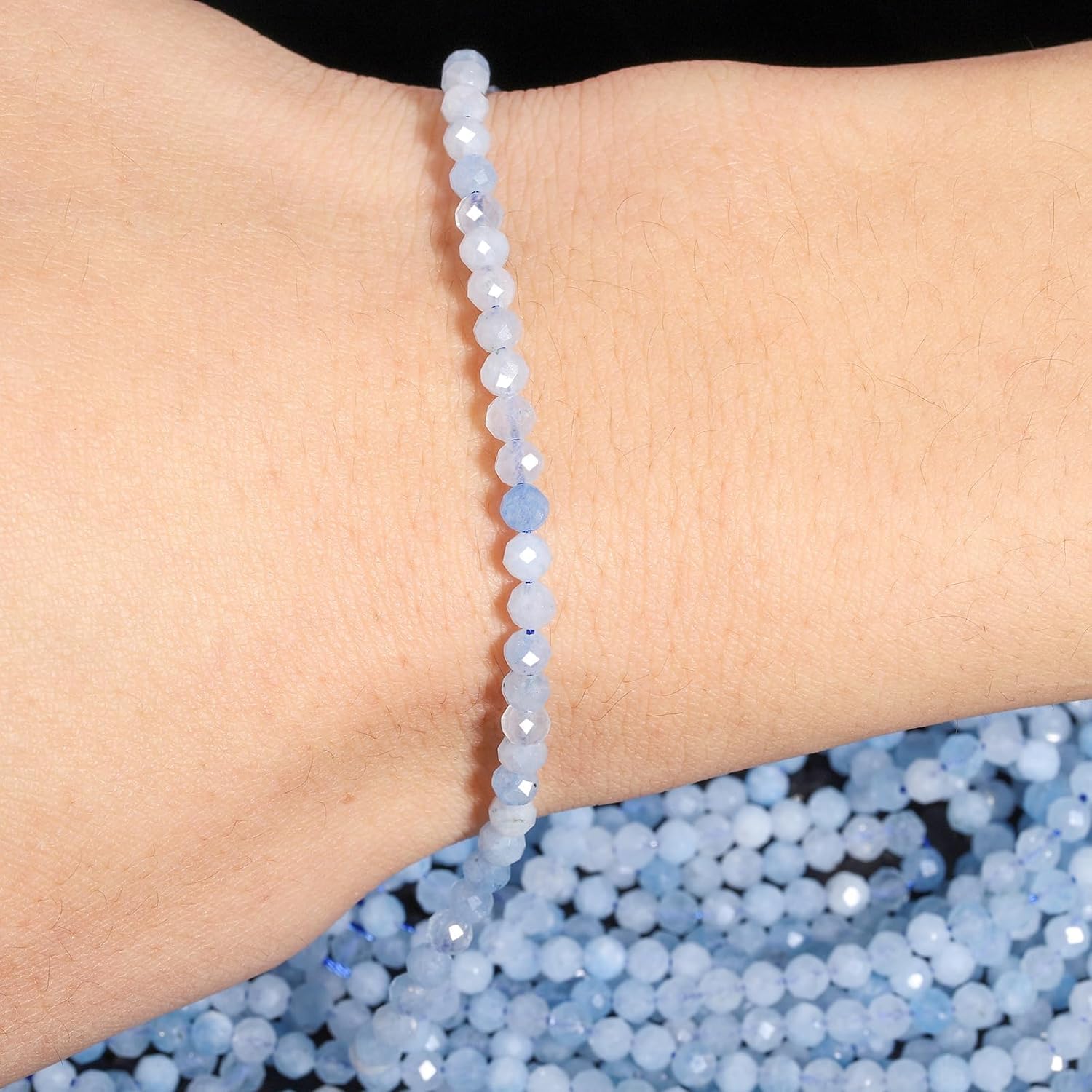 Song Xi 90pcs 4mm Natural Aquamarine Gemstone Beads Faceted Round Loose Stone Beads for Jewelry Making