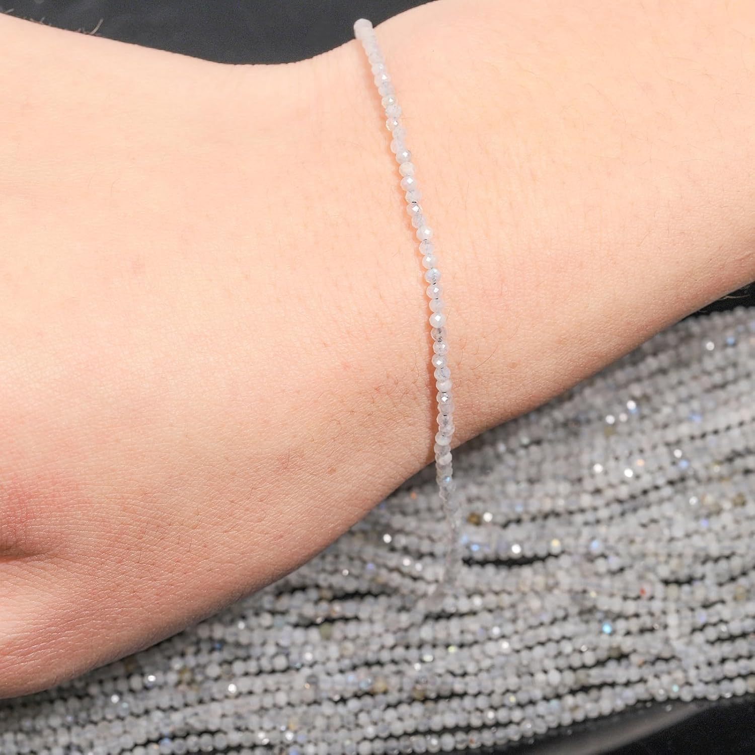 Song Xi 180pcs 2mm Natural Gray Labradorite Gemstone Beads Faceted Round Loose Stone Beads for Jewelry Making