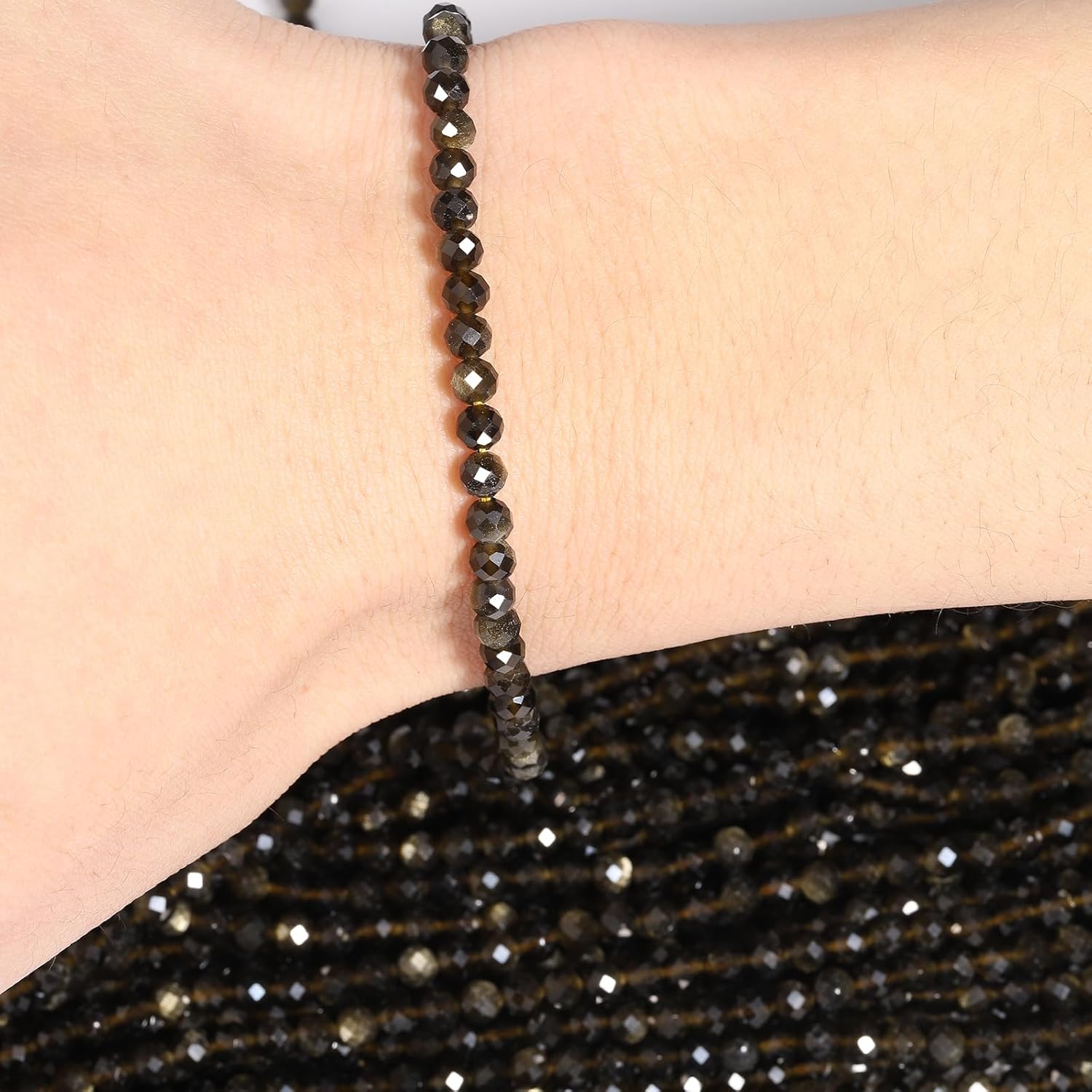 Song Xi 180pcs 2mm Natural Gold Obsidian Gemstone Beads Faceted Round Loose Stone Beads for Jewelry Making