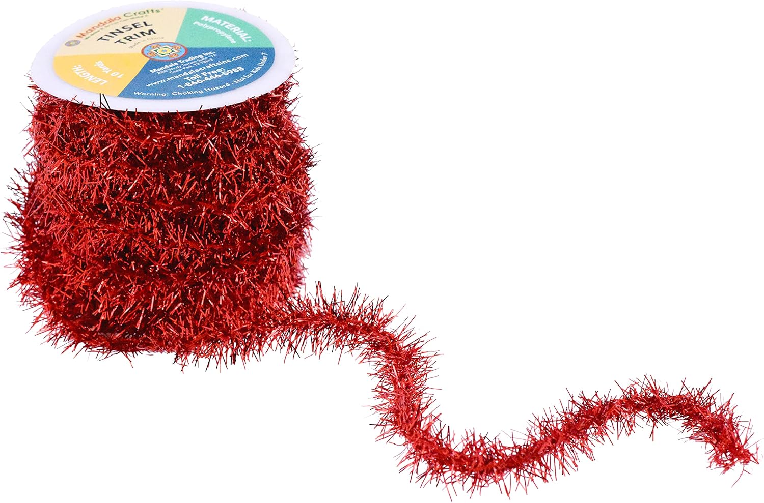 Mandala Crafts Red Tinsel Garland - Thin Metallic Foil Glitter Mini Garland for Christmas Tree, Party, Wedding Decor, and Holiday Decorations