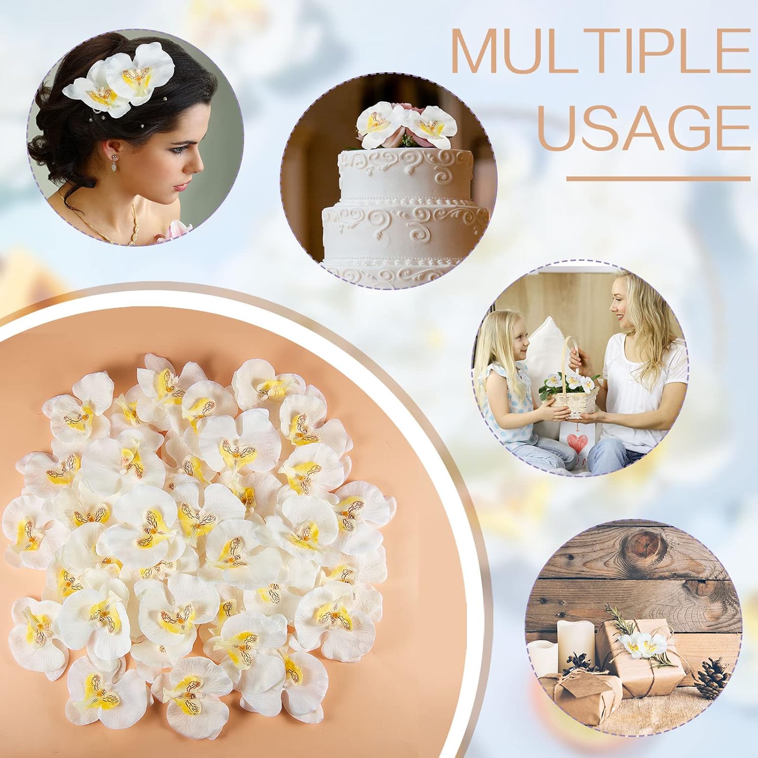 - Versatile decorating occasions: our fake silk phalaenopsis flower heads can be applied in many ways, such as suitable wedding decorations, wreaths, DIY crafts, vines, or to make bouquets, centerpieces, boutonnieres, cake flowers, etc.; They are also suitable for store windows, classroom tables, coffee tables and other placements to bring you lasting beauty