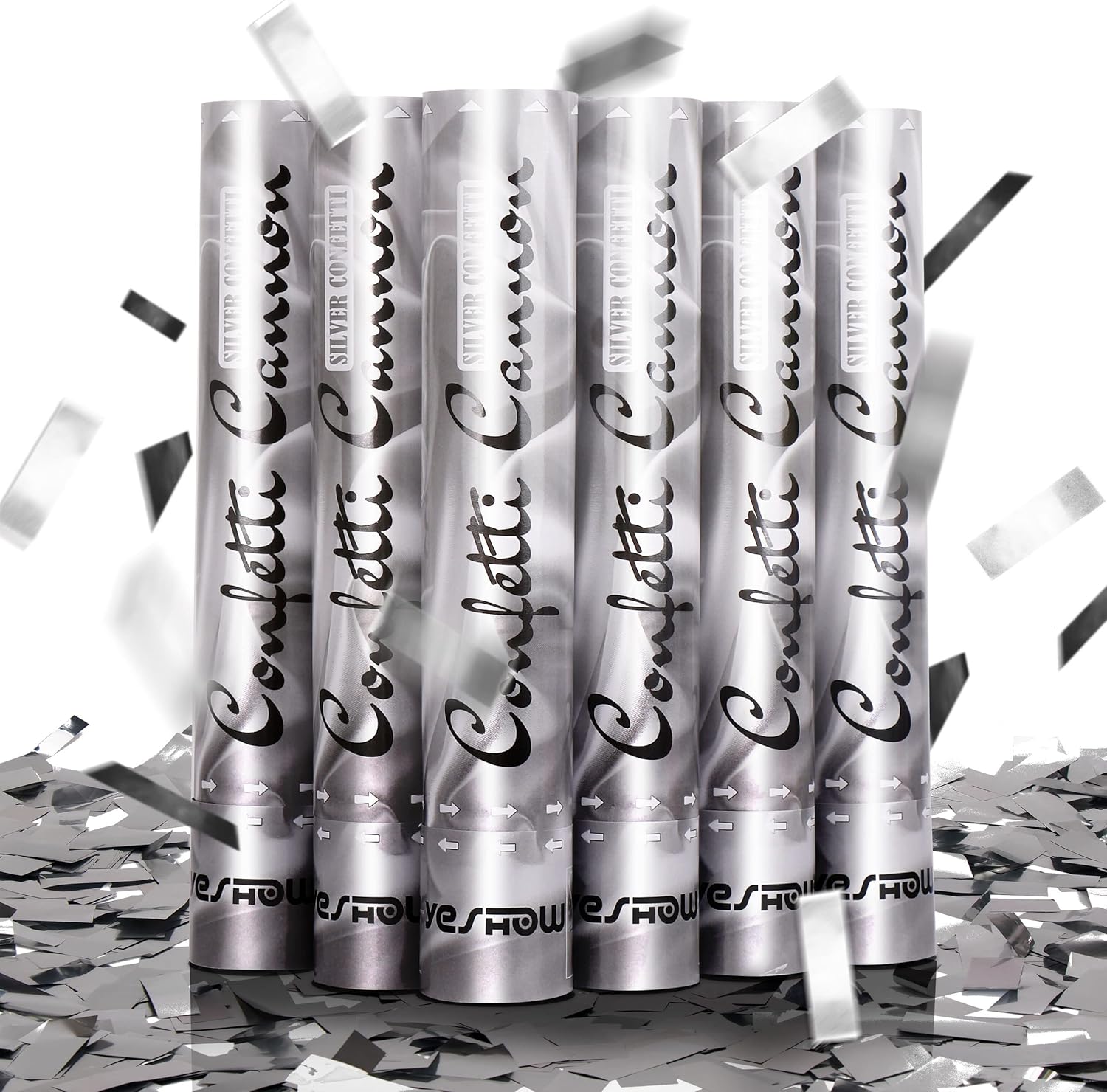 Confetti Cannon Party Poppers Shooters,(6 pack) YESHOW Confetti Blaster Silver Metallic for Birthday Graduation Wedding Christmas New Year’s Eve