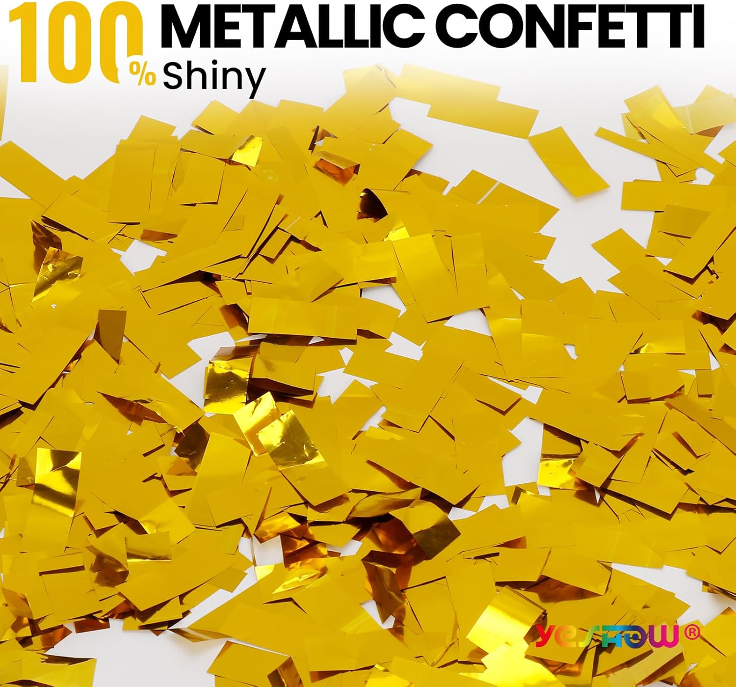 - 🎉【TWICE THE CONFETTI, DOUBLE THE FUN】 Our gold confetti cannon is loaded with 180 grams of gold confetti—twice the amount of standard poppers—for a truly spectacular display. Despite the extra confetti, it's lightweight and easy to handle, making it perfect for all ages and events