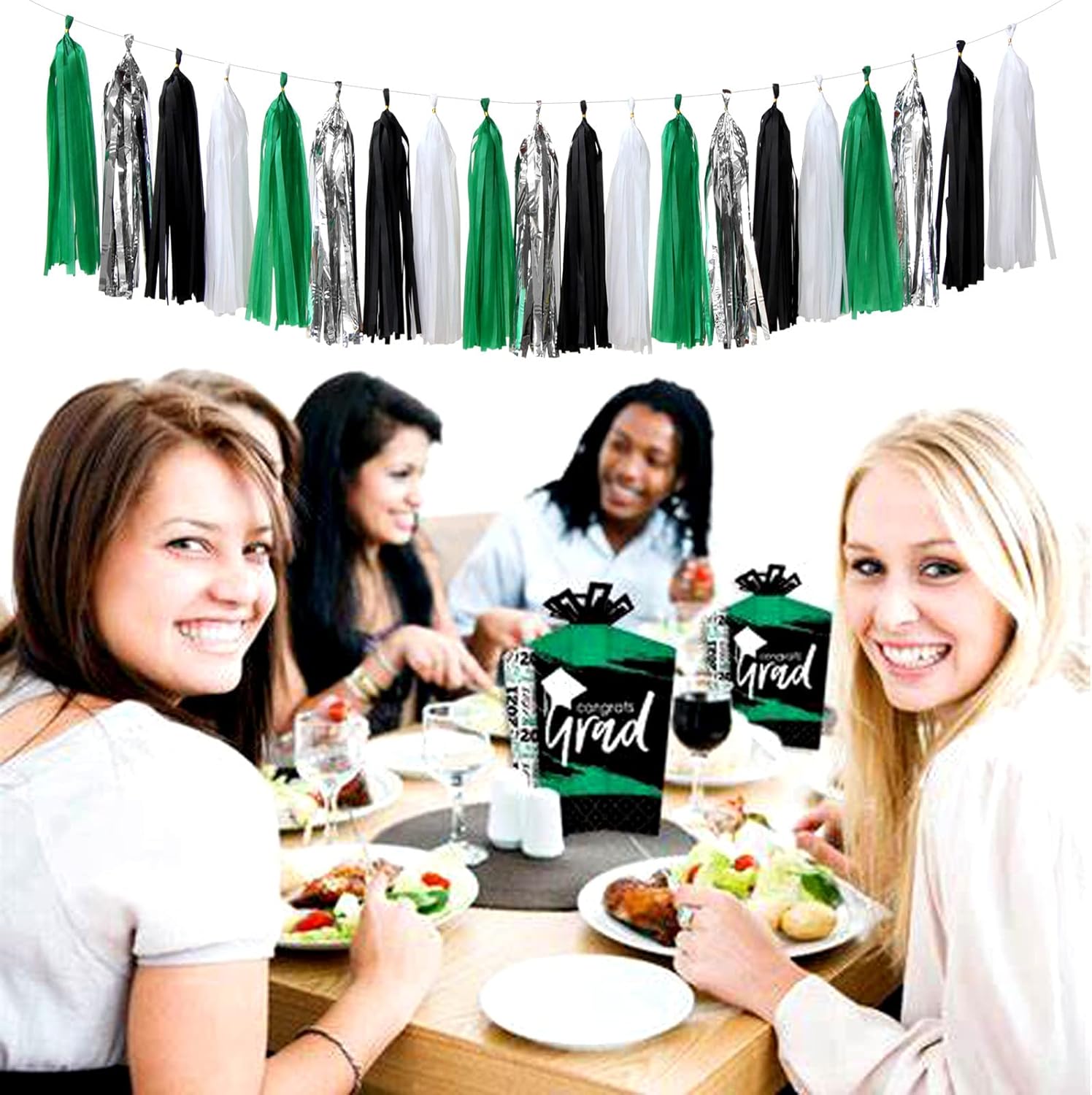 Black Green Silver Football Party-Decorations - 30pcs Soccer Graduation Streamers,Tissue Pom Poms,Tassel Garland Backdrop Men Boys Birthday Spring Sunmer Bunting Jungle theme Banner Lasting Surprise