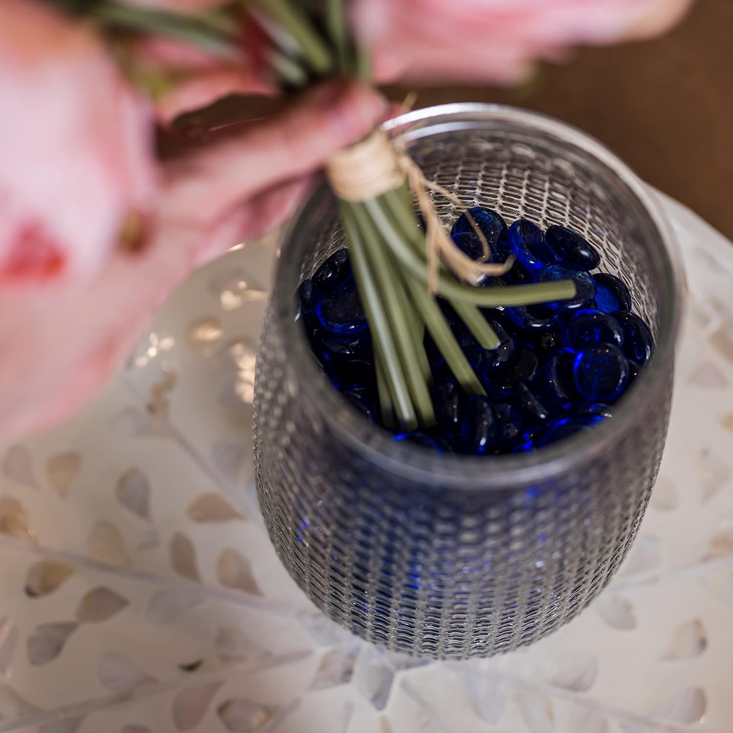 Galashield Flat Glass Marbles for Vases Cobalt Blue Glass Gems Beads Pebbles Vase Filler (1 LB, Approx. 105 PCS)