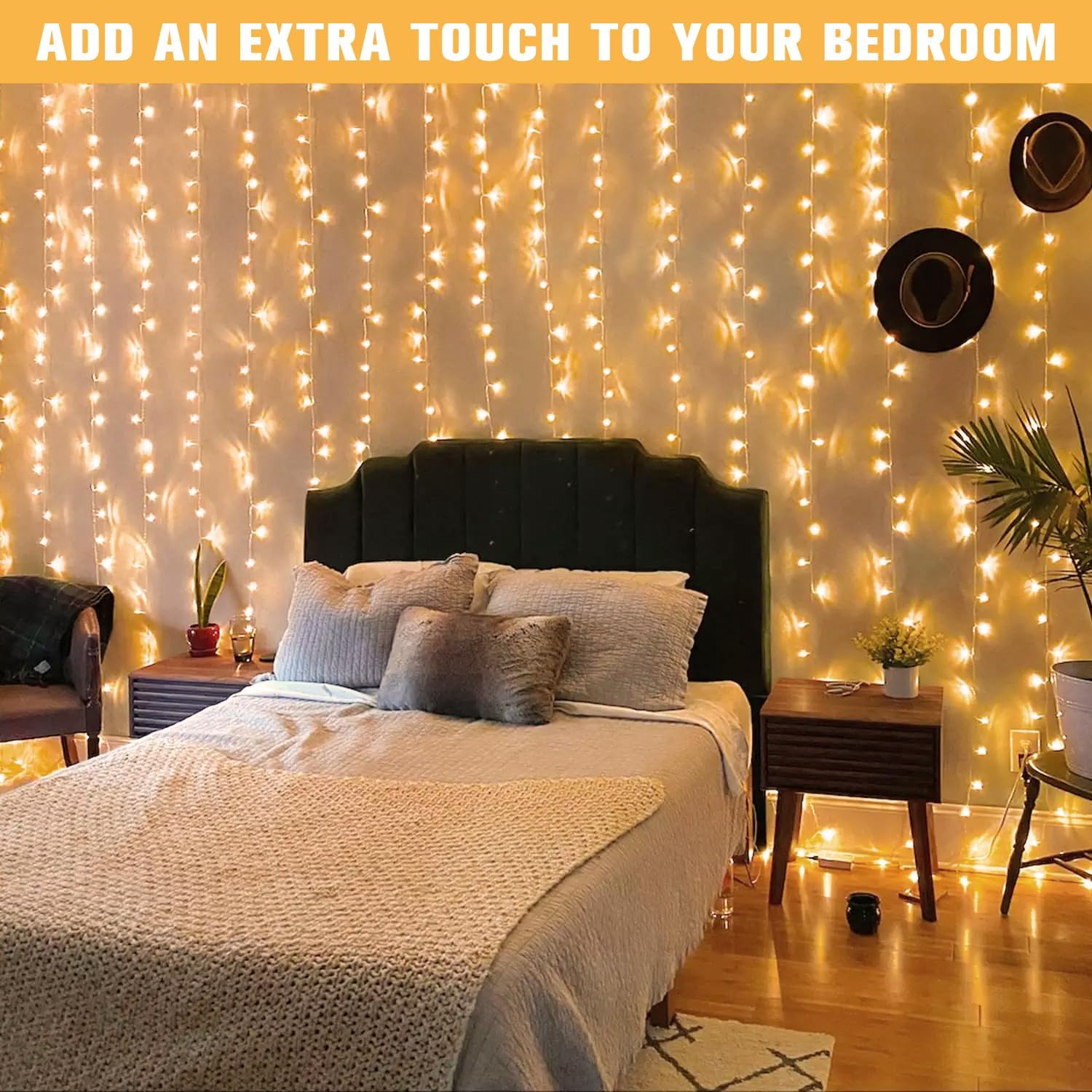 - ULTRA-LONG 600 LED CHRISTMAS CURTAIN LIGHTS: The Christmas curtain lights (non-connectable) come with 20 light strands, each containing 30 LEDs for a total of 600 LEDs. It gives off a warm soft glow, and really adds a nice touch of oomph to your home. The 19.6ft curtain string lights are 2 times the length of general ones, making them sufficient to cover most windows and walls, great for your room decor. NOTE: for stability of light brightness, multiple sets of these lights can NOT be connected