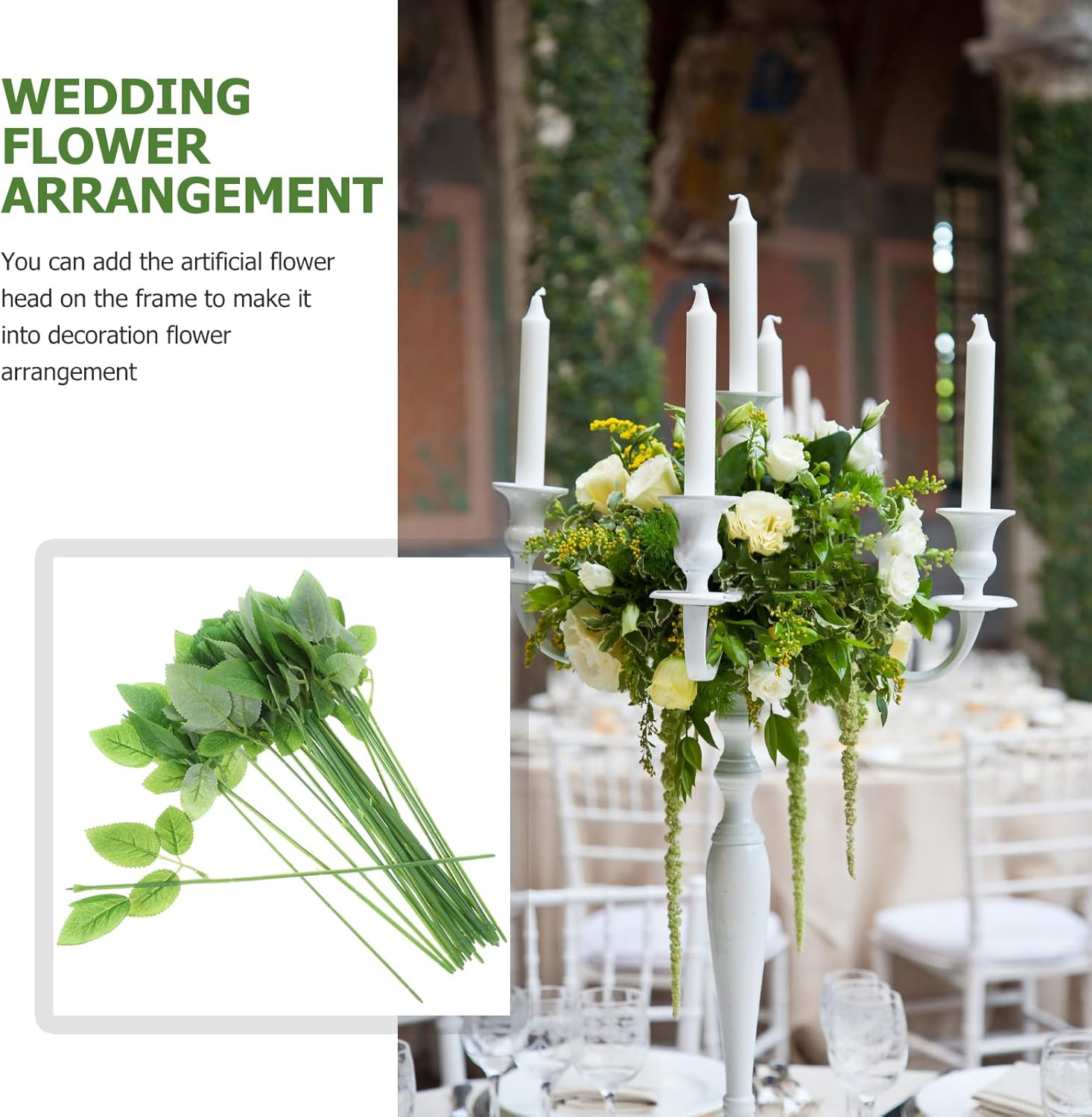 Veemoon 30pcs Floral Wire Stem with Leaves Artificial Plastic Rose Floral Wire Stems DIY Craft Bouquet Making Floral Arrangement Tools for Wedding Bouquet Centerpiece Home Decor
