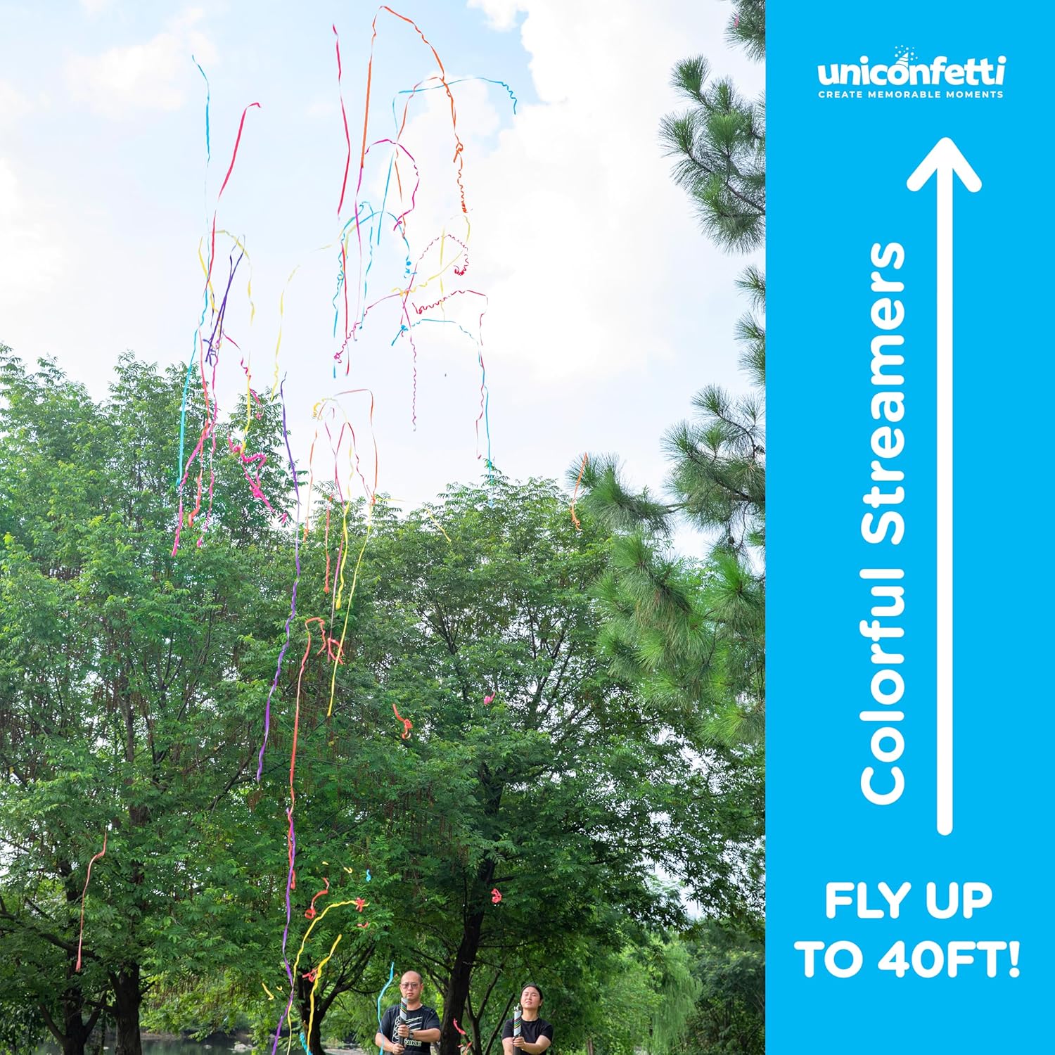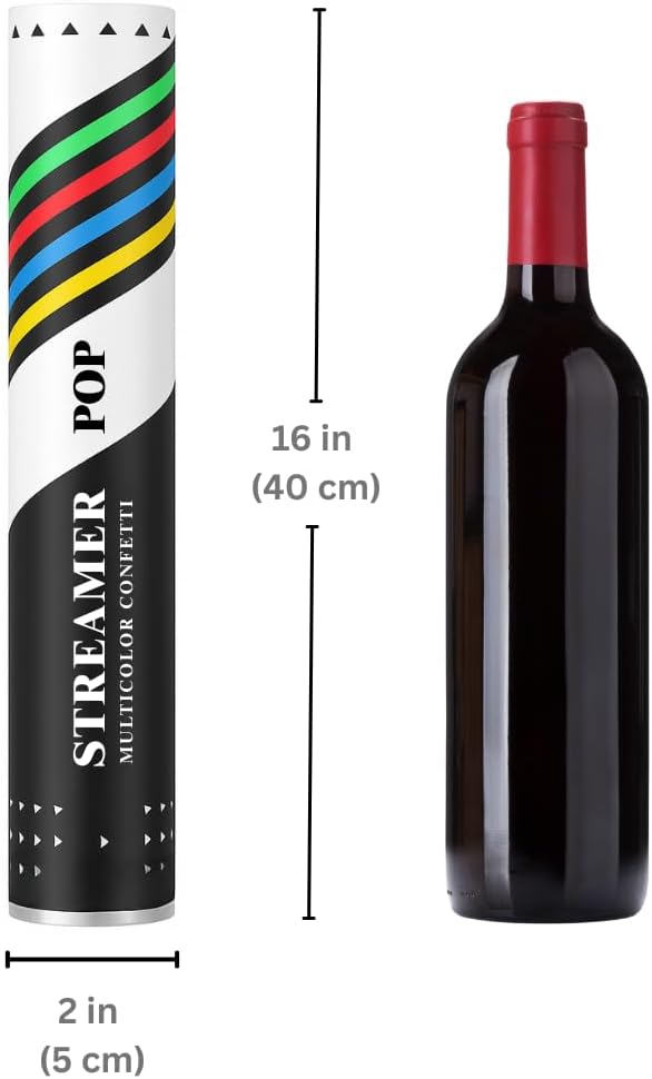 - 🎉 SUPER LOUD & FUN for any party or occasion - 6 JUMBO-SIZED poppers shooting multicolor STREAMER confetti papers up to 40 feet, fall and twirl slowly down in colorful streams. Poppers will shoot with loud [POP] that will guarantee to get everyone's attention.