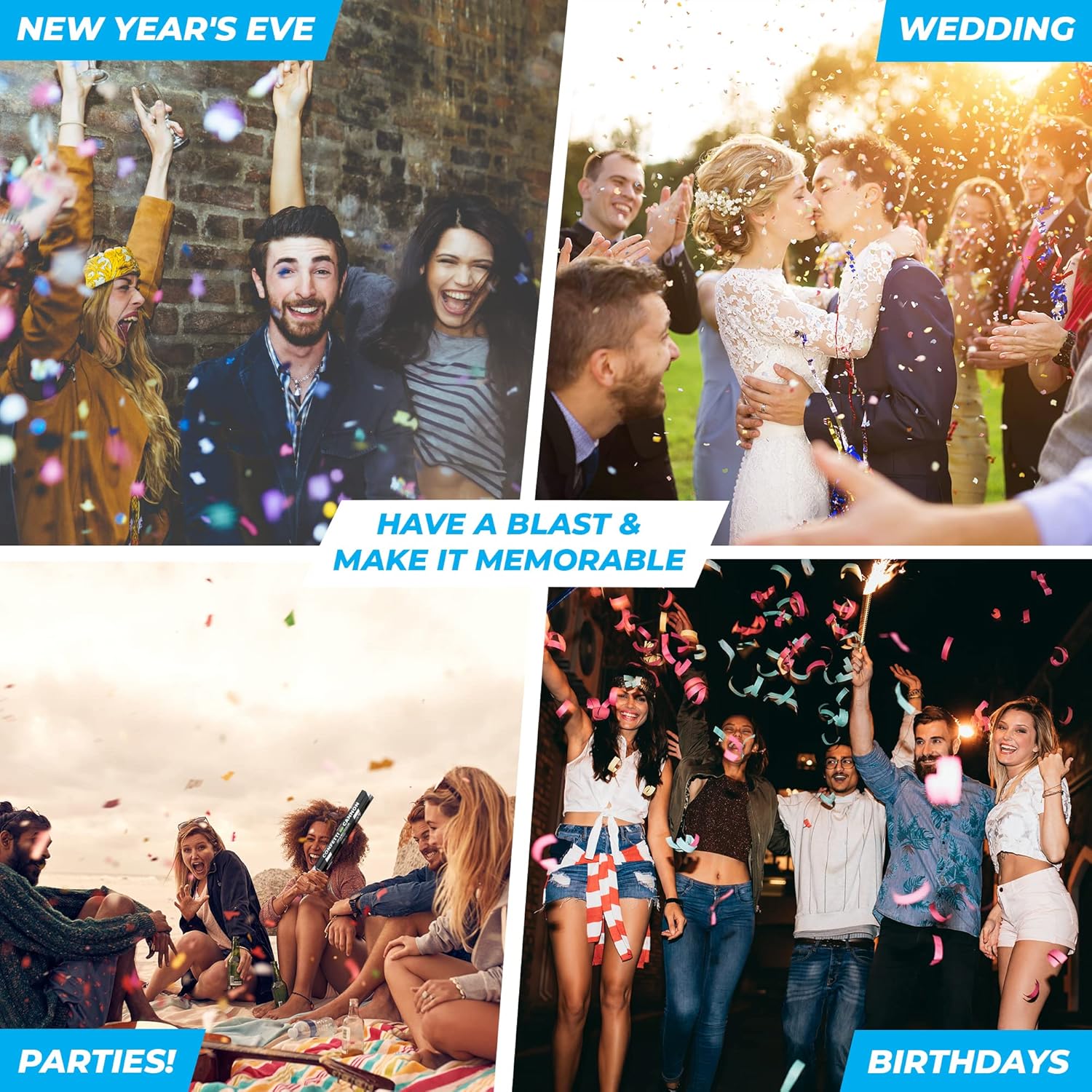 - 🎉 EASY POINT & TWIST ACTION - Don't need the strongest arms to blow up these babies! Point upwards away from people and twist to shoot, Streamer confetti paper is loaded on top of compressed air and is launched by twisting the cannon. Operation manual is included inside the box.