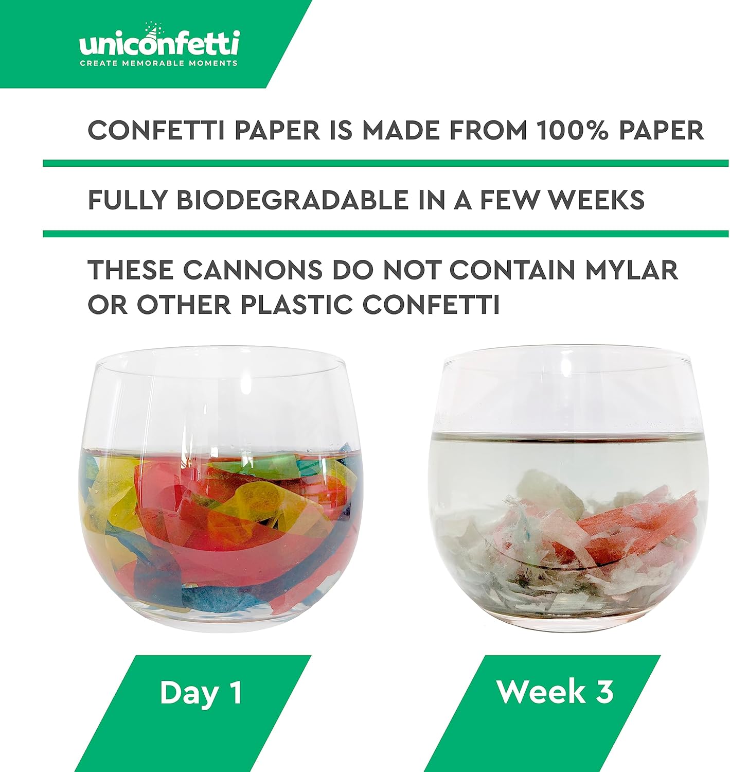 - 🎉 100% BIODEGRADABLE & SAFE - Streamer Confetti is made of lightweight fire resistant papers, 100% biodegradable. Color dye is non-toxic and won't rub onto your clothing. 100% safe for your party and good for the environment.
