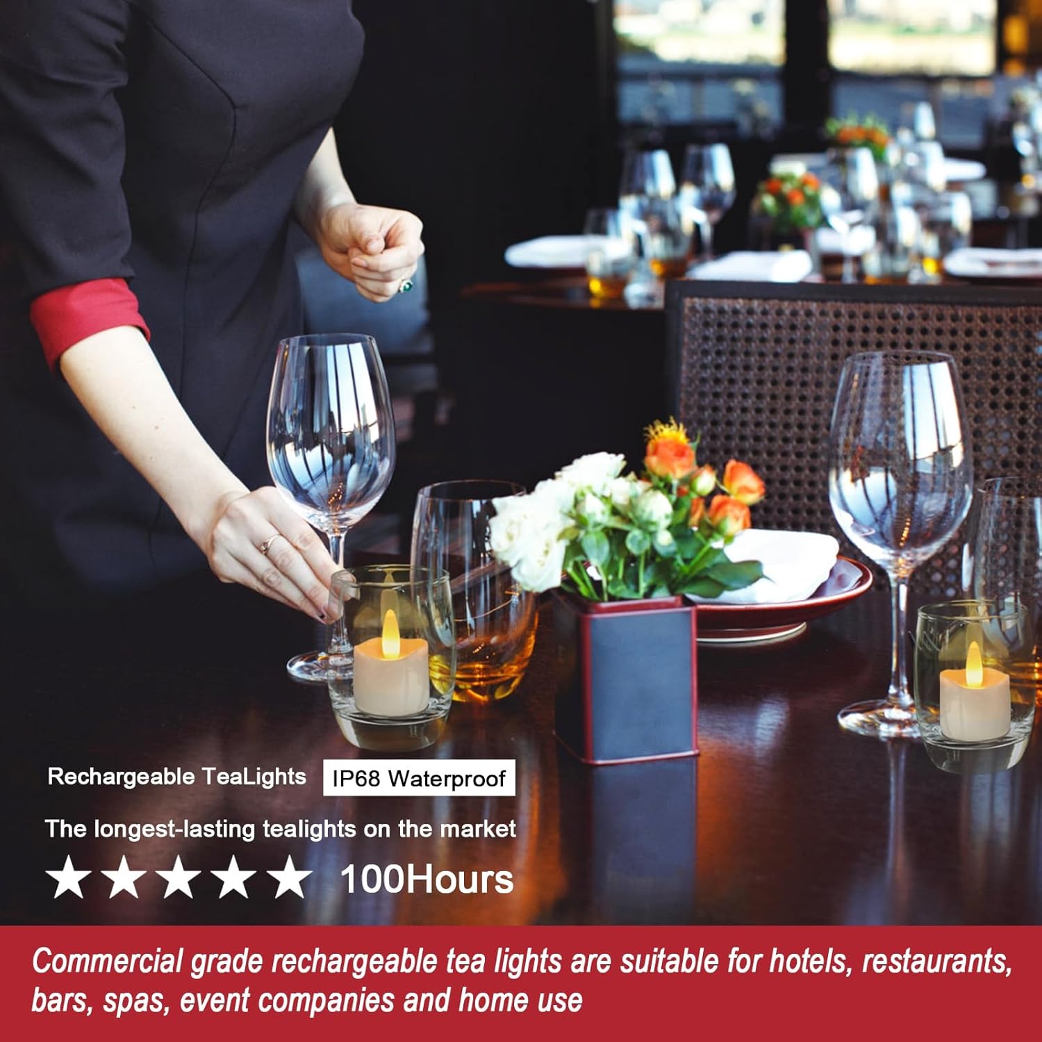 • Wide Applications: Our rechargeable tea lights candles measure 1.57"*2.08" (Diameter*Height), are perfect for any occasion, from romantic dinners to holiday decorations, Centerpiece, Wedding, Anniversary, Table, Halloween, Christmas, Parties, wall Sconces, tea lights/votive holders. Ideal for use as a daily decoration or special event, you'll love the warm atmosphere they bring to your space. NOTE: The Candles will be in Red light when charging, and turn off automatically when fully charged