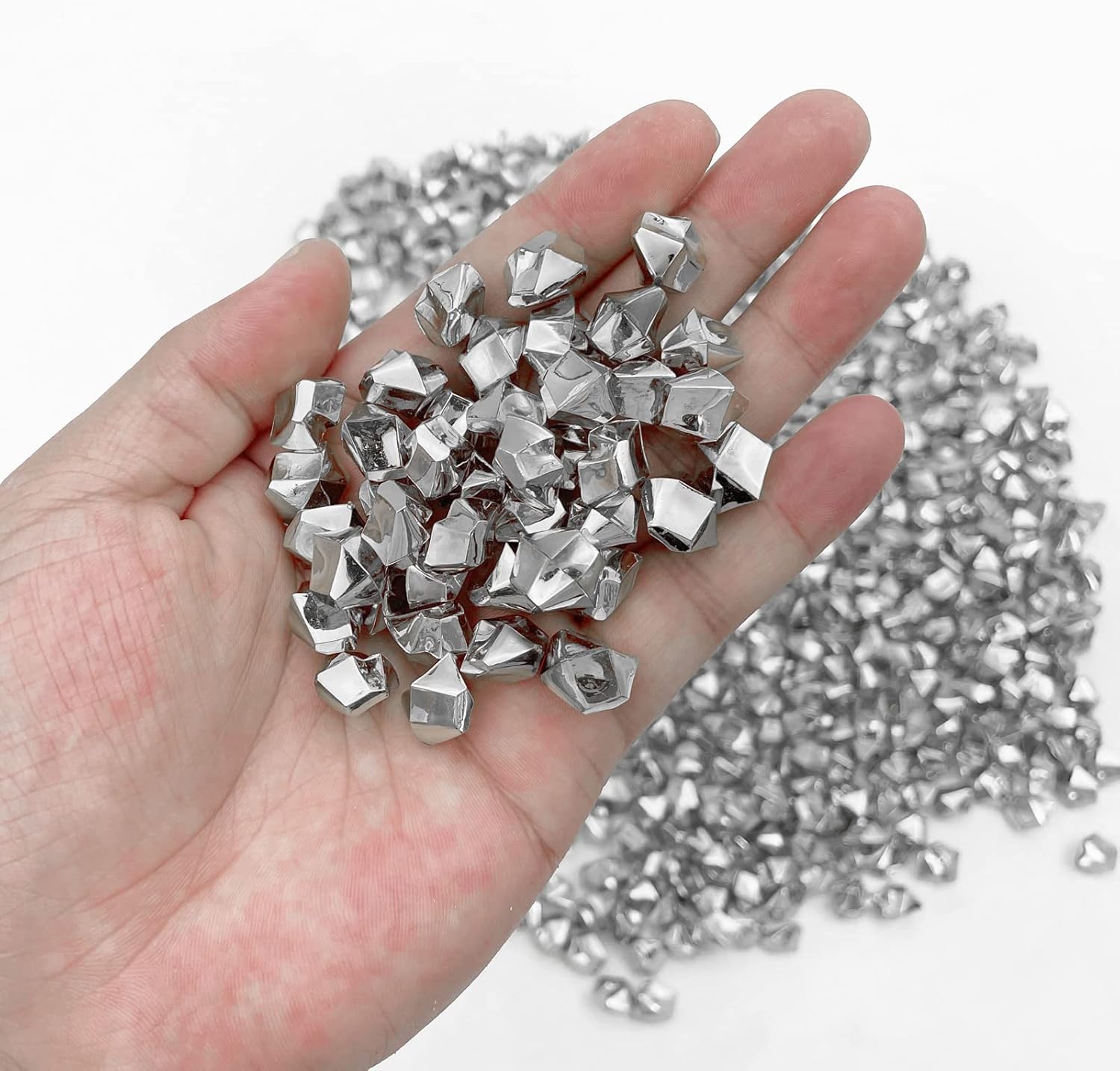 - Every piece of our Acrylic crystal gems are well polished and have no rough edges. These ice cubes are beautiful in shape and color. They are very bright under the light or sunshine, which can make your decoration distinctive and add brilliance to your life.