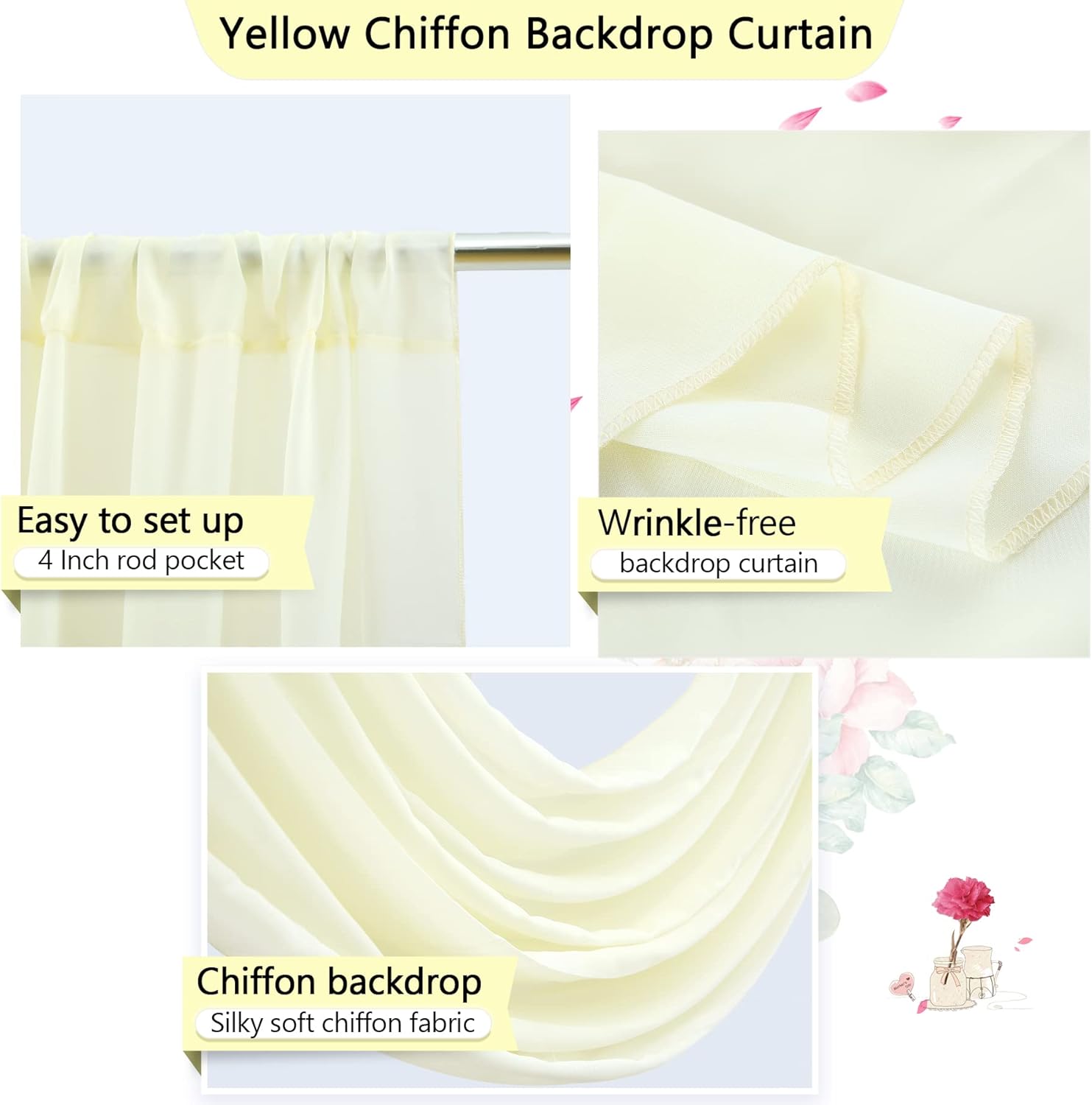 - Wrinkle-Free Fabric: The wedding curtain backdrop is made of 100% sheerness and thickness chiffon fabric, looked simple and elegant, touch silky soft and used sturdy. Chiffon fabric is easy to clean. Ivory chiffon curtains allow seamless integration with any color scheme via decorations