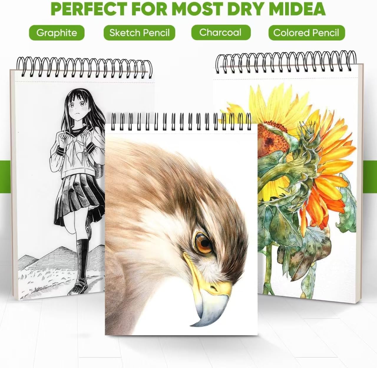 - 【High-quality sketching drawing book pad】This sketching book paper is acid-free and PH neutral with standard-weight 68lb/100gram, which is much thicker and better than the similar sketchbook from other brands. It prevents bleeding, smudging and feathering for clean artwork. Keep your artwork looking great for years to come!