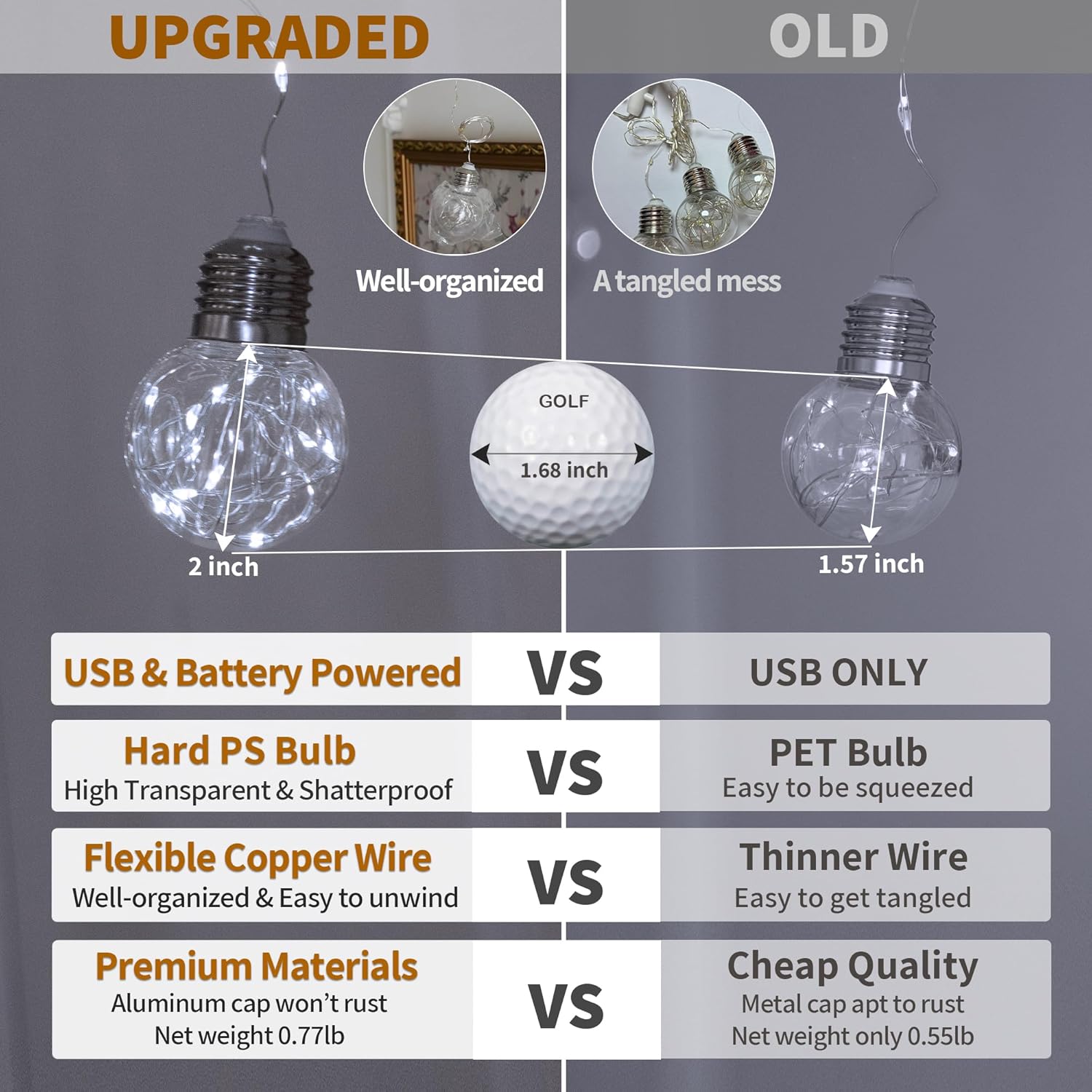 - [ 9.8x3.3 ft ] Wishing Ball Curtain Lights: The edison look bulbs are filled with fairy-like copper wire LEDs, hanging on silver wire curtain lights, to create a soft mode for just any place, add charm and character to your activities and provide relaxing mood lighting for party