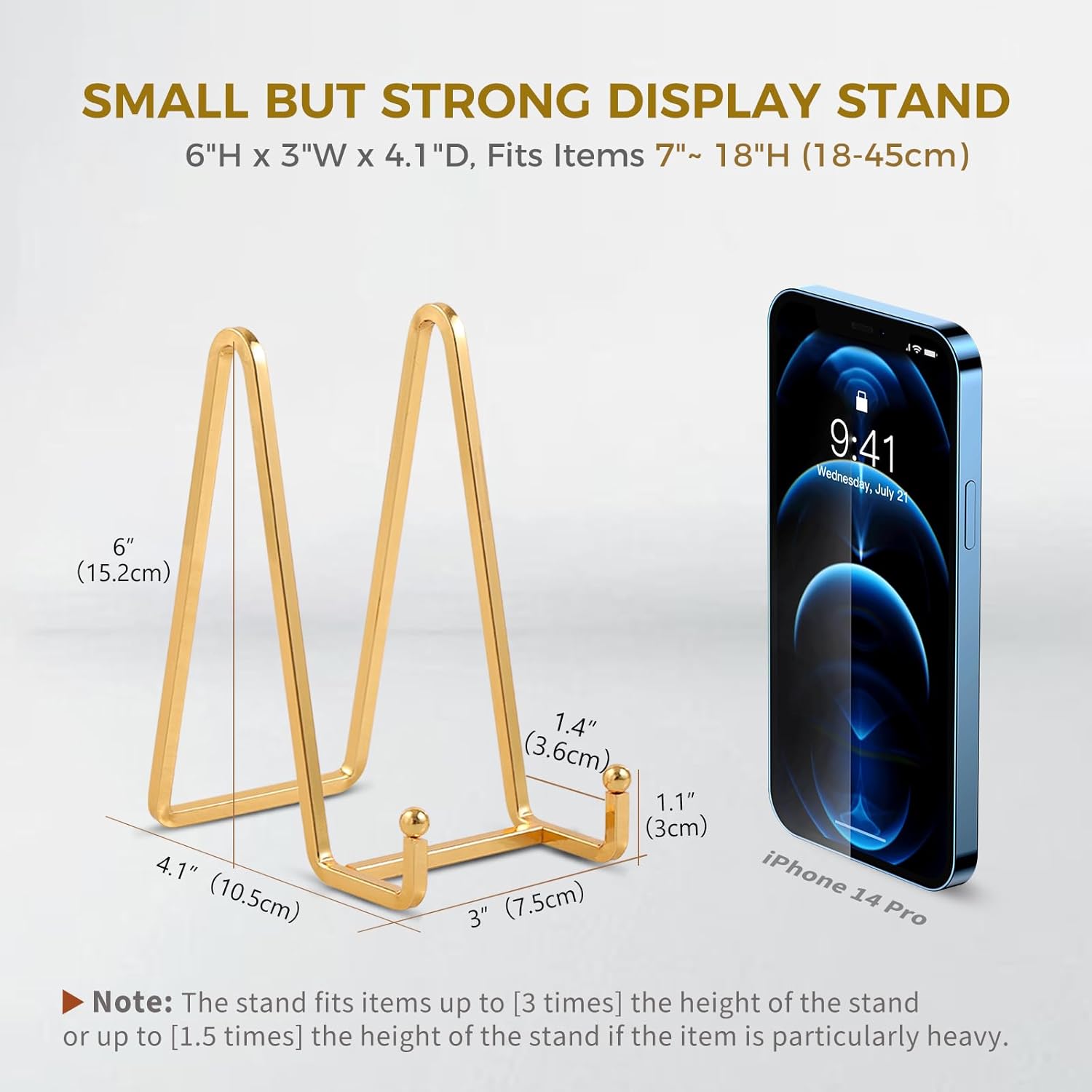 - 3 Different Sizes - Just choose your perfect stand! 3-inch small plate stand fits for item of height/diameter from 3" to 9", the lip depth is 1.25". The 4.5 inch table top easel stand can hold the item of height/diametar from 5" to 11", the lip depth is 1.5". As 6-inch picture holder stand, it fits for the item of height/diameter from 7" to 15", the lip depth is 1.6".