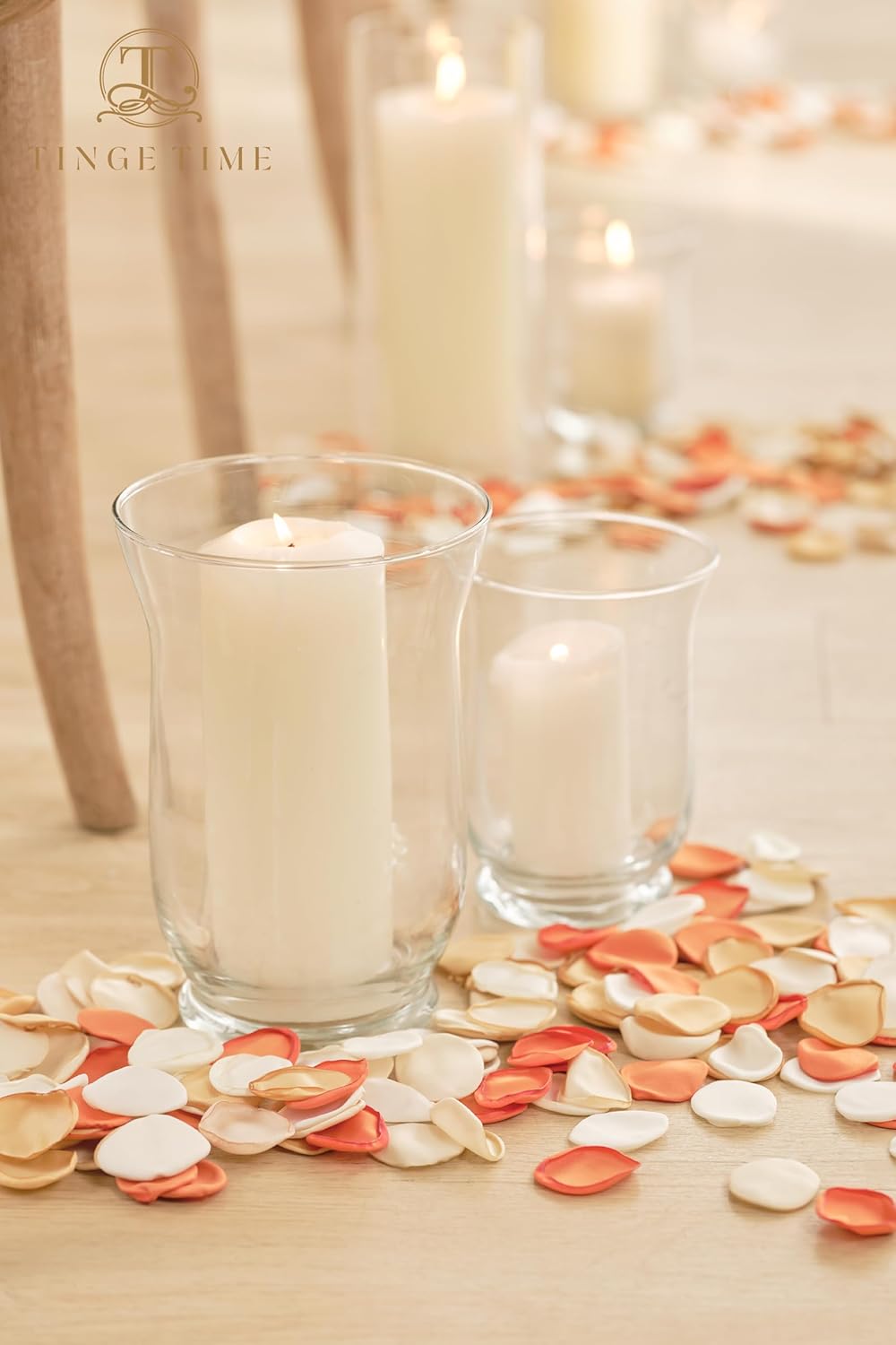 - 【Color Details】 White/Light Brown/Champagne Gold/Burnt Orange. This is a theme-specific color combination carefully designed by TINGE TIME professional florist. We also offer solid color fake rose petals pack for your free combination to compose the specific scenes which hit the decoration of your wedding.