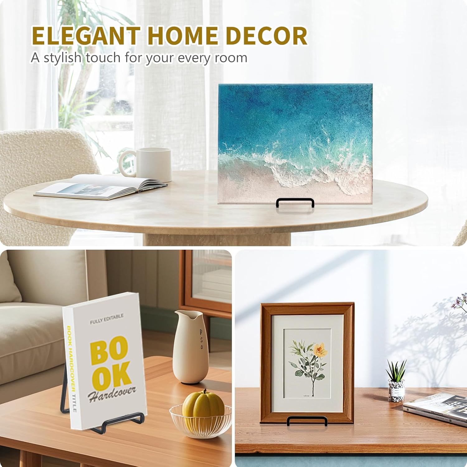 - Elevate Interior Decor - Metal frame holder stand is a fine option for spicing up a empty desktop. Minimalist iron design, classic matte coated surface, beautiful and generous, whether it is on the desk, shelf, coffee table, or kitchen countertop, always exudes elegance! It is not only a bracket, but also a decorative ornament.